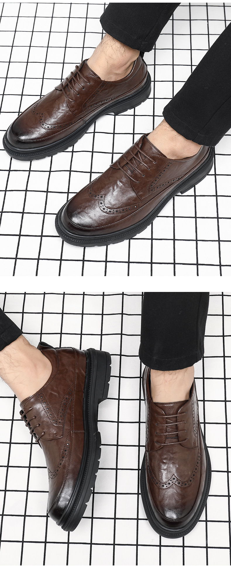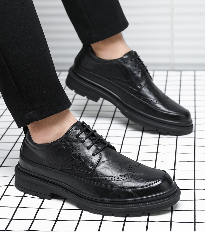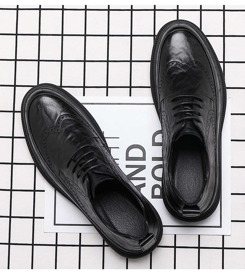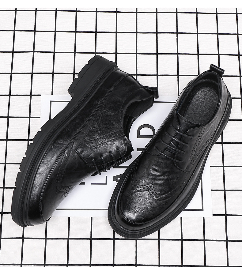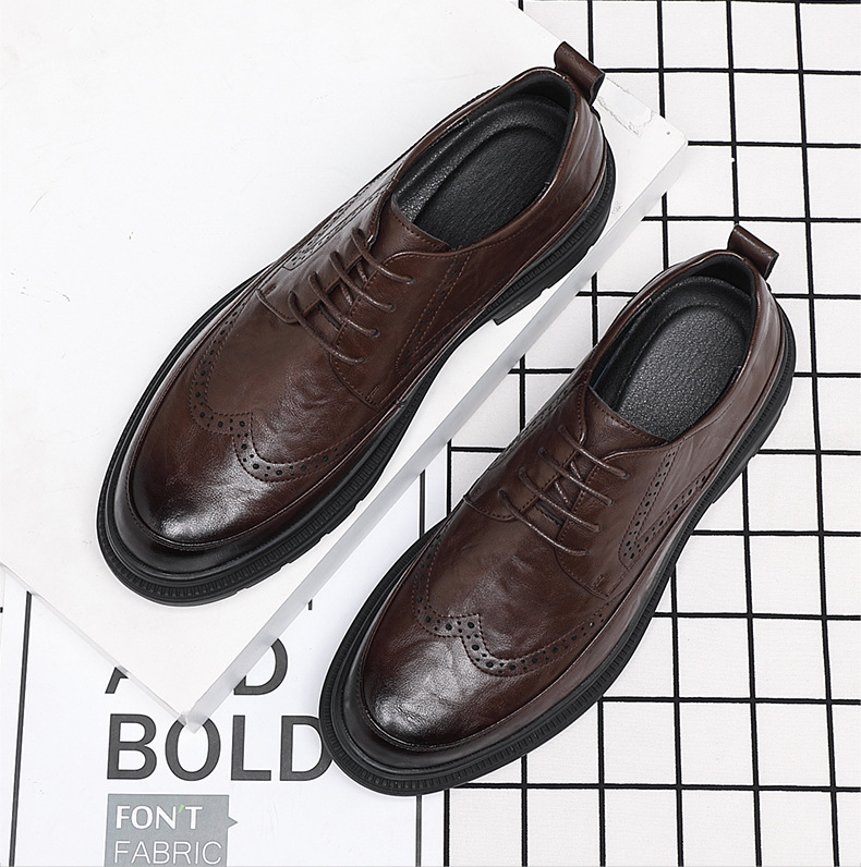 Men's Retro Business Shoes with Buckle Head and Low Heel for Adults