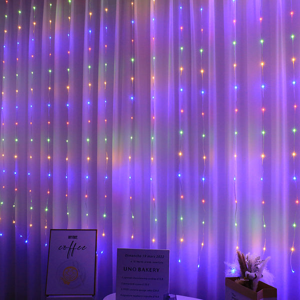 3x3 LED Curtain Light USB Control with 300 LED Beads, IP43 Waterproof, 2 Light Color, 100 Lifespan, PVC Material