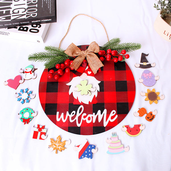 2024 New Christmas Santa Claus Wooden Interchangeable Door Plate Wreath Hanging Decoration Festival Welcome Sign Door Hanging Decor