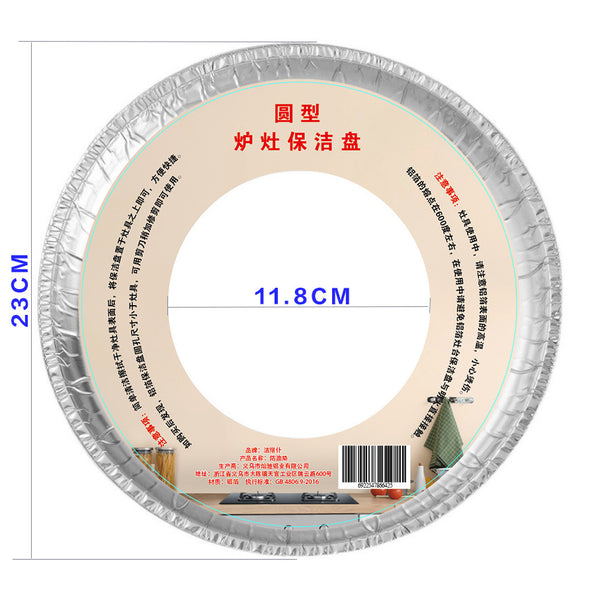 - ["23cm size fits most kitchen gas stoves","Enhanced thickness for better protection","Anti-oil function for easy cleaning","No logo printing or customization available","Made of tin foil for durability"]