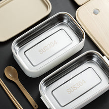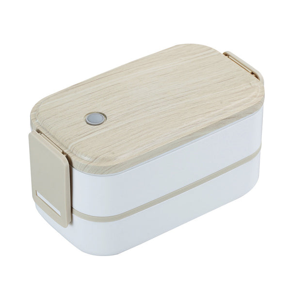304 Stainless Steel Double Layer Student Lunch Box with Separator and Wood Grain Design