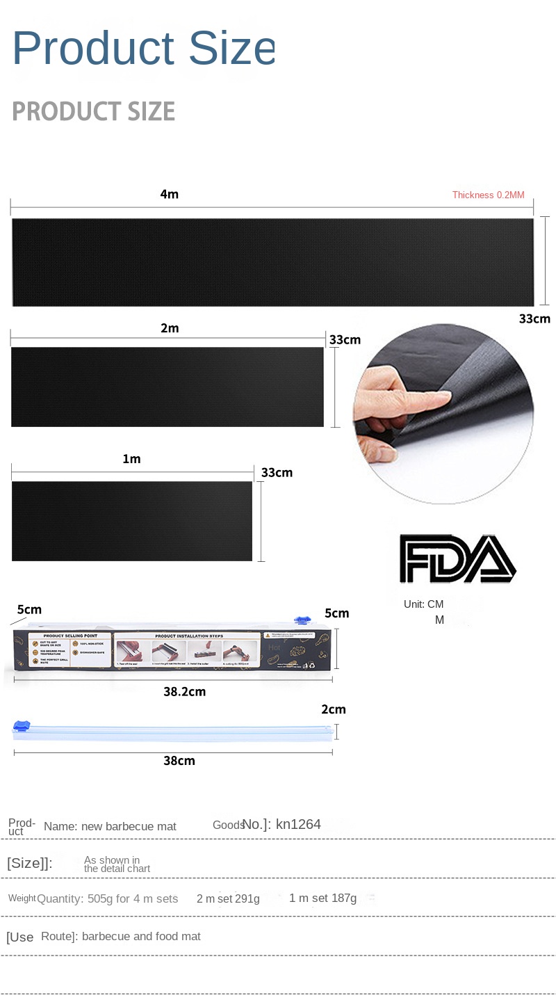 1.2m 2m 4m Non-Stick BBQ Grill Mat with Cuttable Teflon Sheet