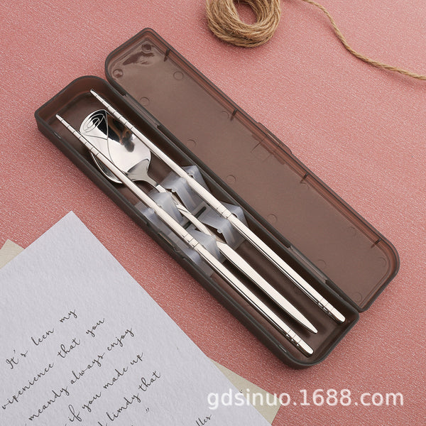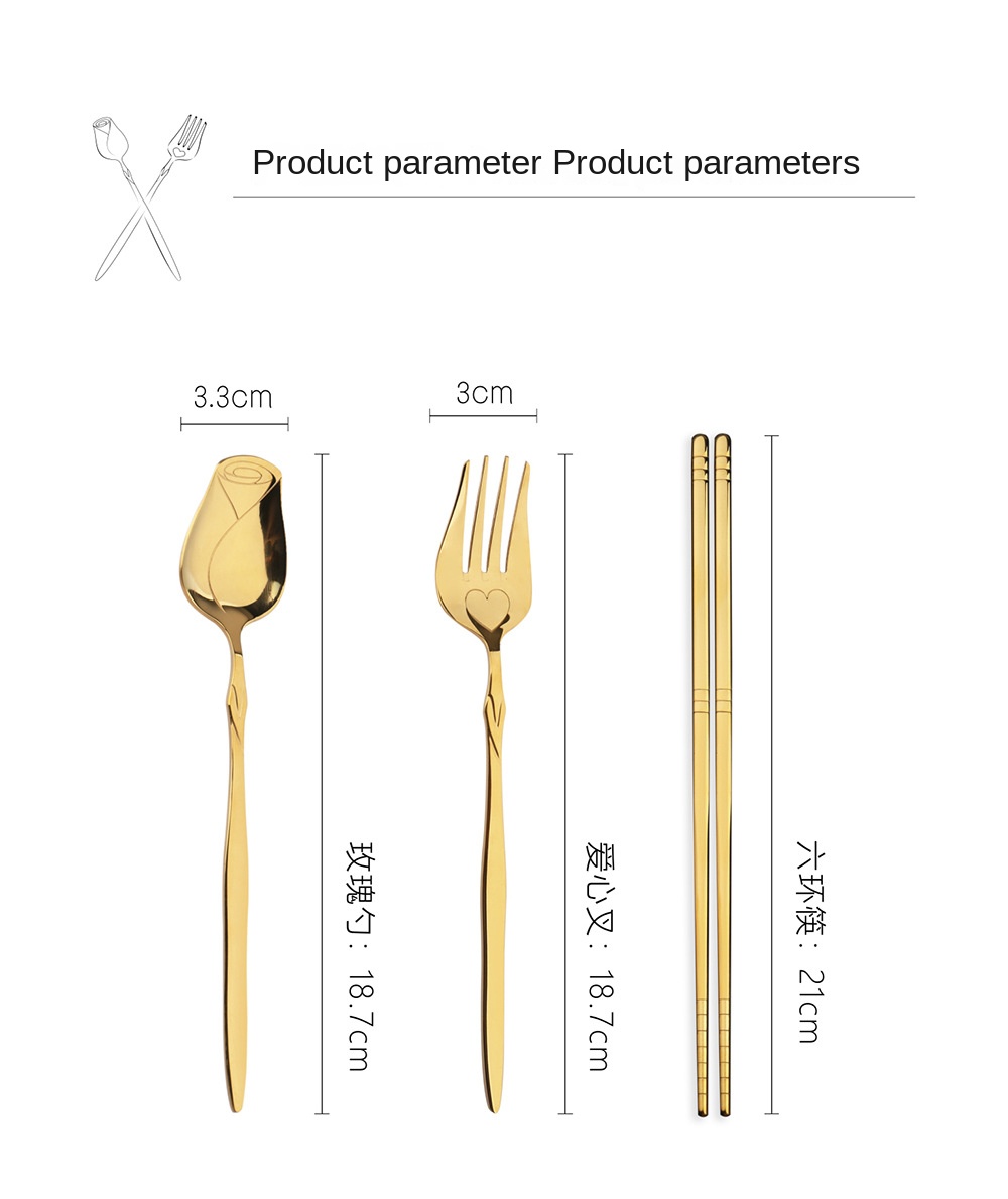 Creative Rose Flower Spoon Fork Set - 410 Stainless Steel 3 Pieces Portable Tableware Set for Office Workers and Students