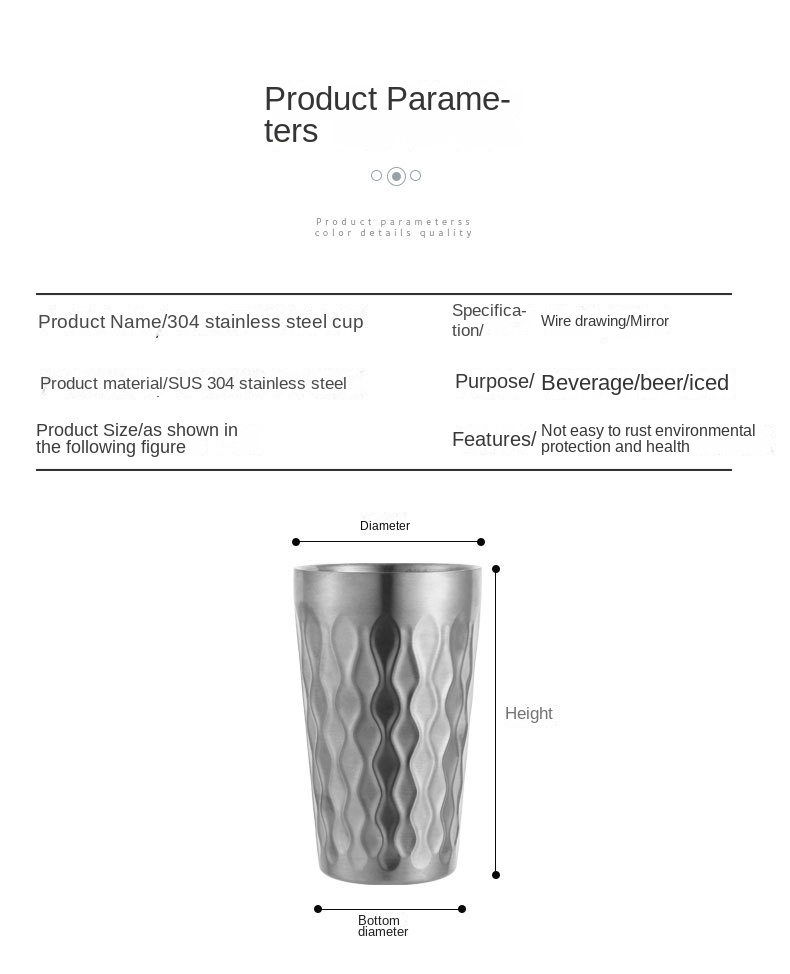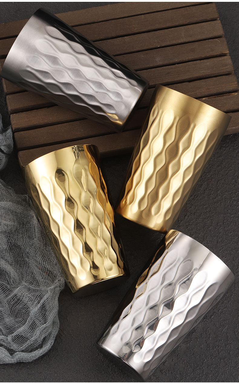 Ins Style 304 Stainless Steel Double Layer Cup with Creative Hammer Pattern Juice Cup for Restaurant Anti-Drop Large Capacity Beer Cup and Tea Cup