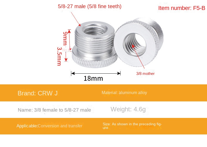Metal 3/8 to 5/8 Screw Microphone Clip Adapter Boom Arm Stand Adapter with Microphone Clamp