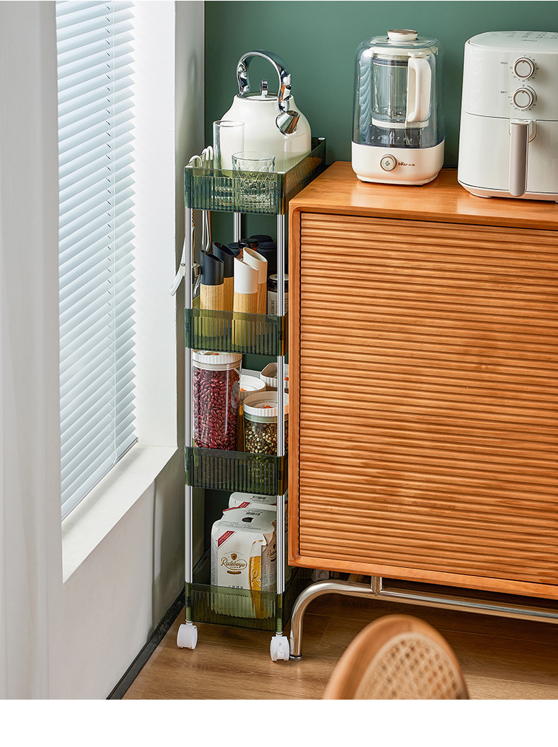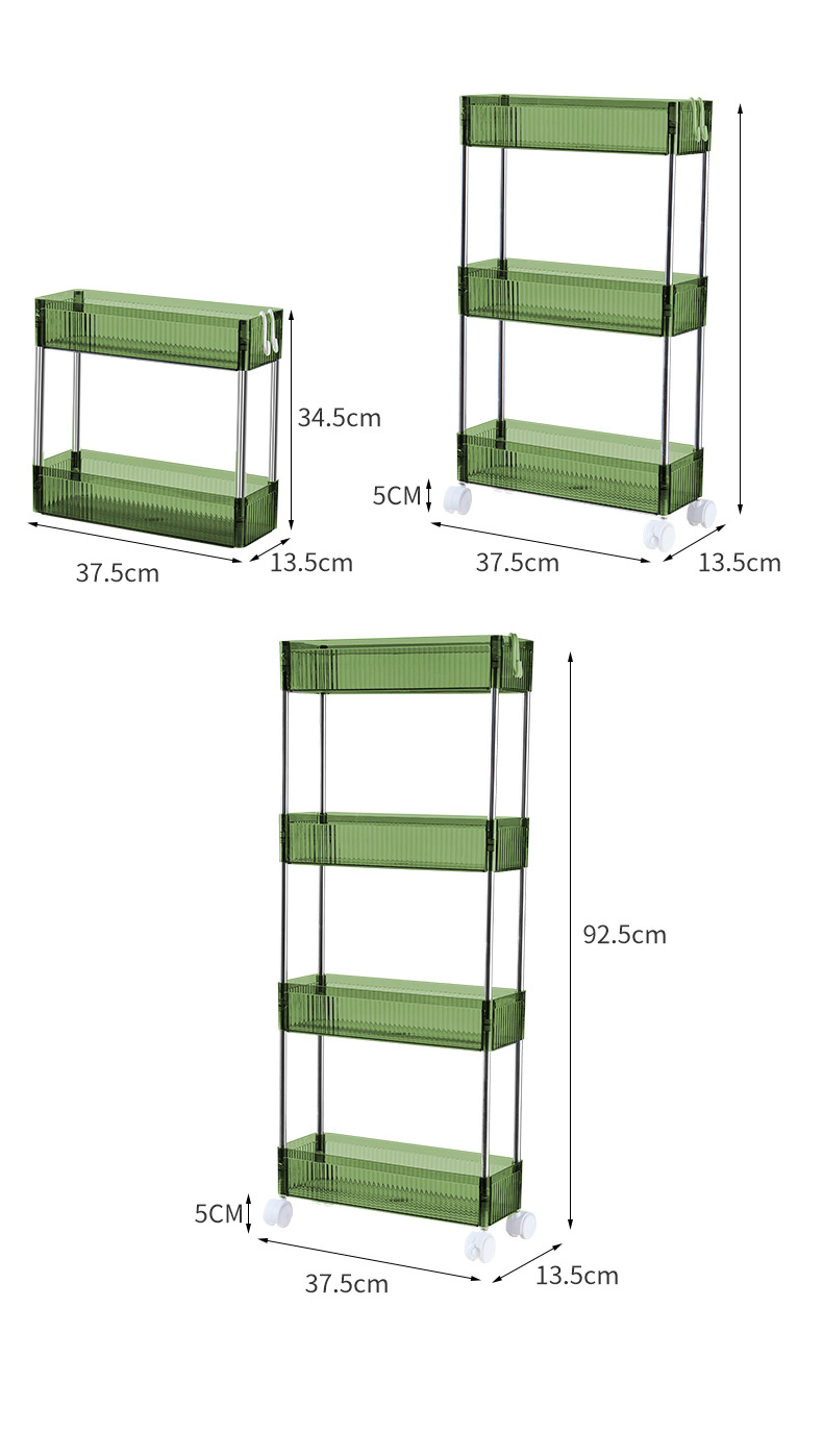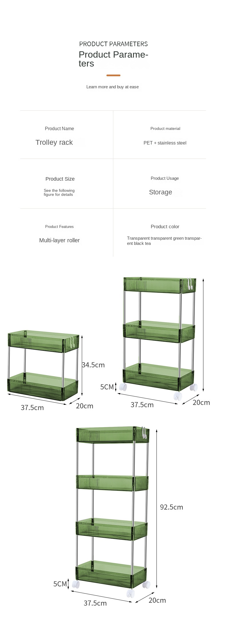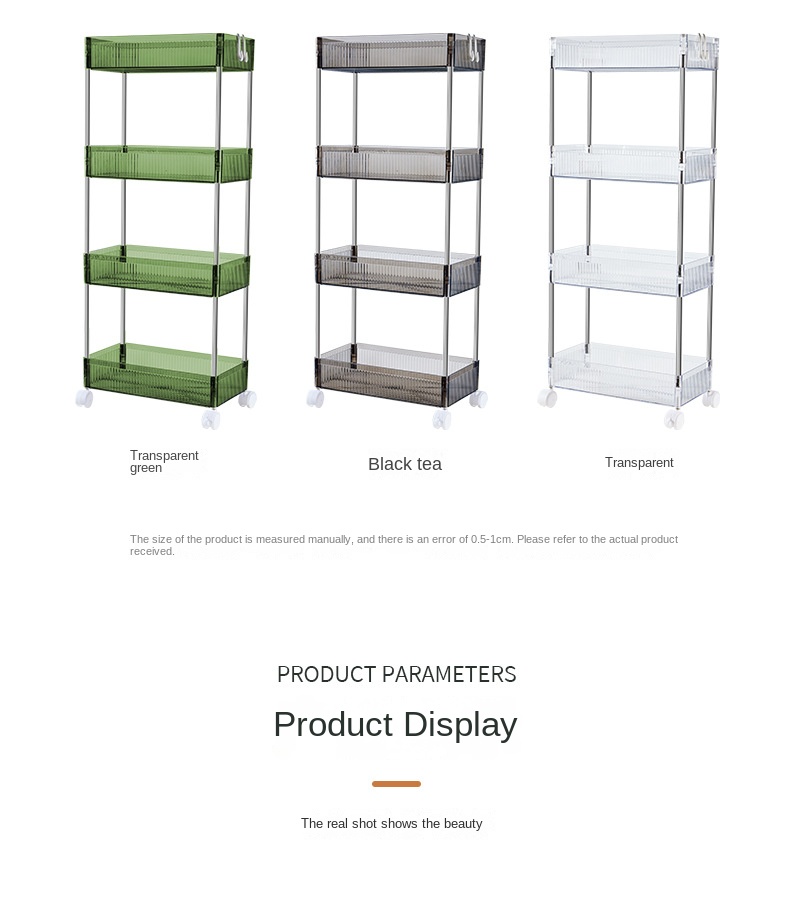 Light Luxury PET Storage Rack with Transparent Seam Cabinet, Bathroom Floor Storage Rack with Wheels and Small Push Cart for Bathroom, Kitchen, Living Room and Bedroom