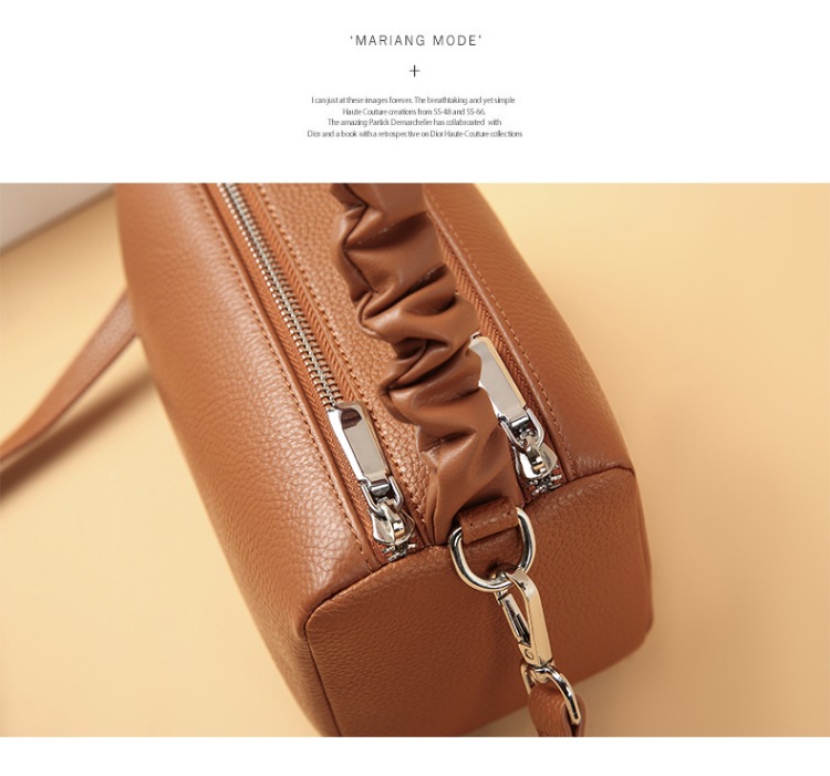 {"Style":"European and American Retro","Bag Size":"Small","Bag Type":"3D Bag","Hardness":"Soft","Material":"Genuine Leather","Bag Shape":"Cylindrical","Opening Method":"Zipper","Bag Trend Style":"Pillow Bag","Fashion Element":"Pleats, 19534511455","Laminated Layer":"Yes","Applicable Scene":"Daily Matching","Material Quality":"PU","Number of Straps":"Single","Internal Structure":"Compartment Zipper Bag","Leather Characteristics":"Top-Grain Cowhide"}