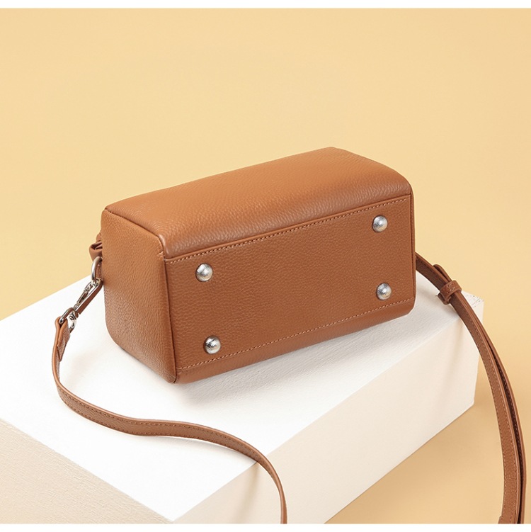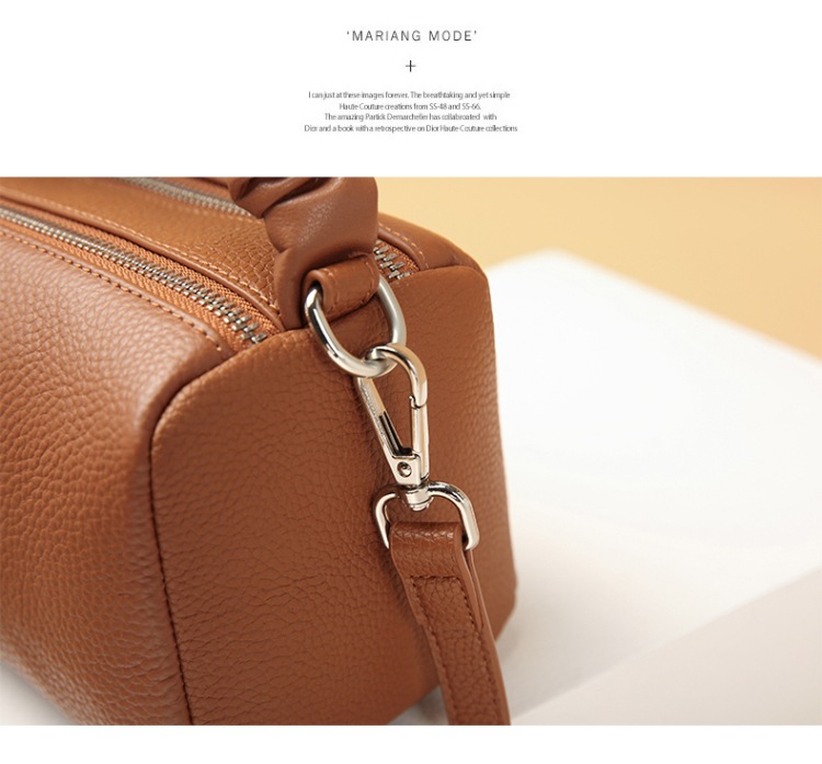 - ["Made of high quality PU leather","Designed with single shoulder strap and double zipper closure","Round shape and small size","Head layer of cowhide material","Perfect for everyday wear and business occasions"]