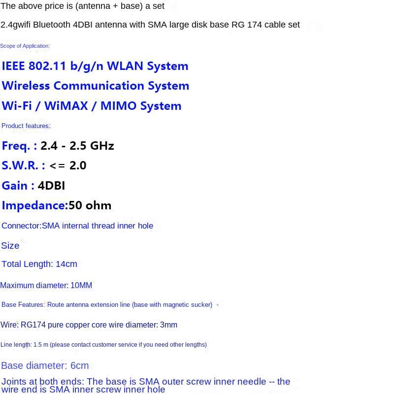 2.4G WiFi Bluetooth White Module Antenna 4DB Gain Antenna with RG174 Magnetic Base Set