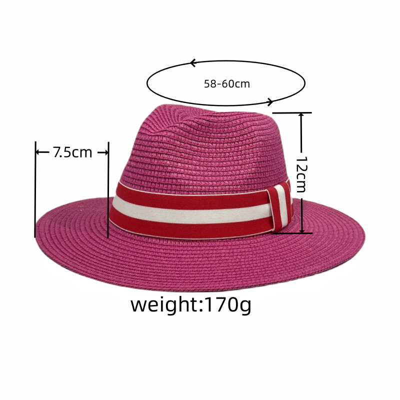 - ["Made of natural straw material, this Panama hat is breathable and comfortable to wear.","The wide brim provides sun protection, UV protection and anti-glare.","The red & white striped design makes it fashionable and stylish.","Suitable for outdoor activities, travel and leisure.","Perfect for both men and women."]
