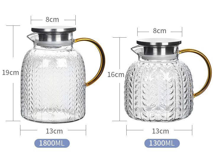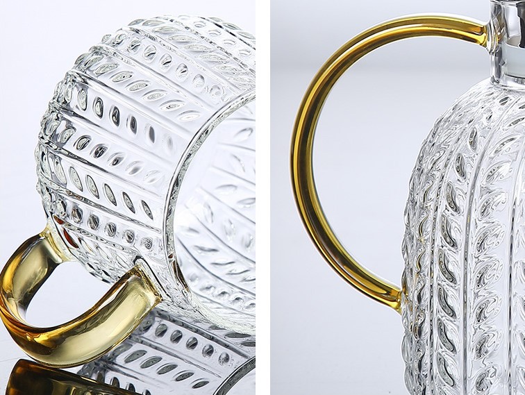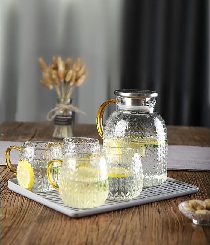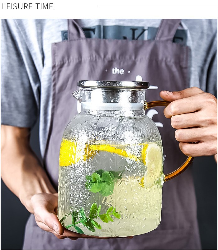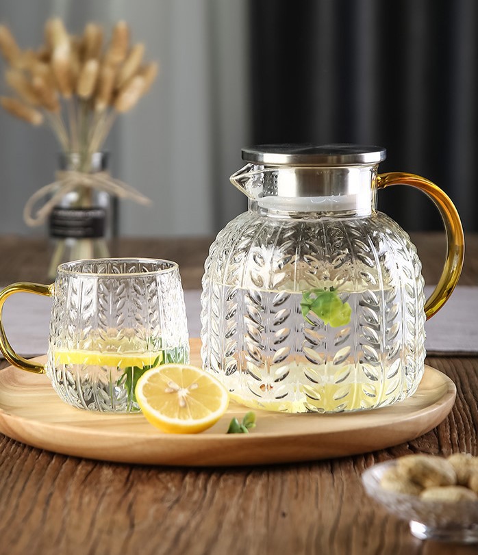 Large Transparent Glass Water Pitcher with Heavy Duty Lemon Cup Hammer Texture Big Water Cup