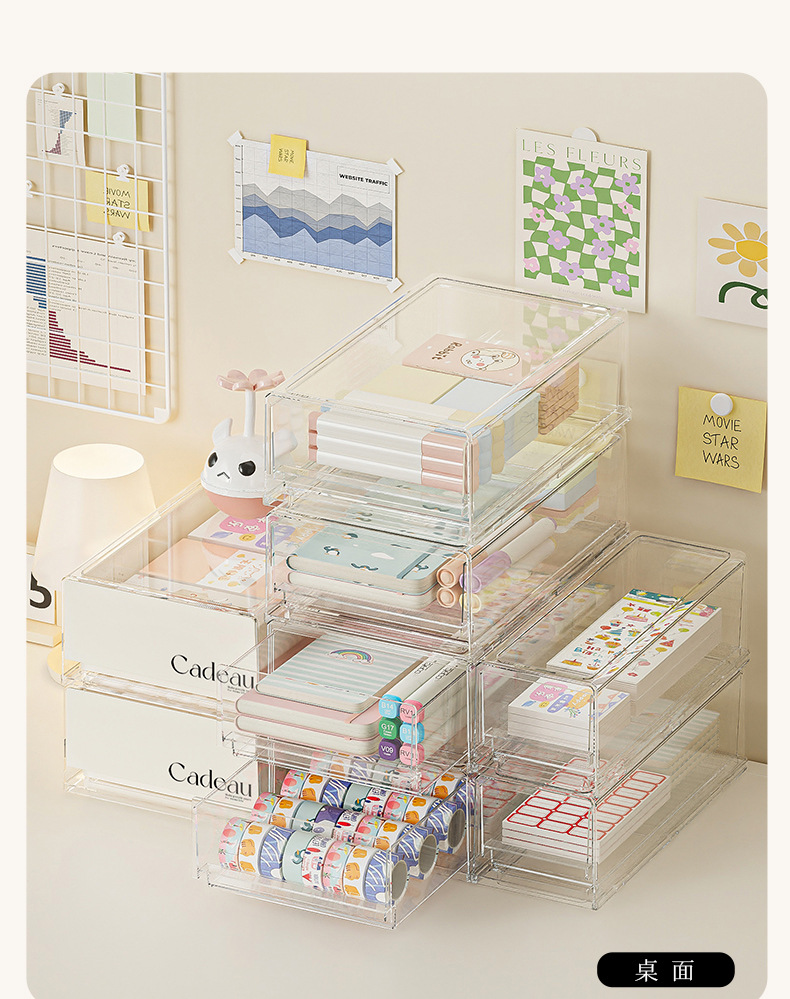 A4 File Cabinet - Transparent Multilayer Drawer-Type Storage Box Office Desk Top Organizer