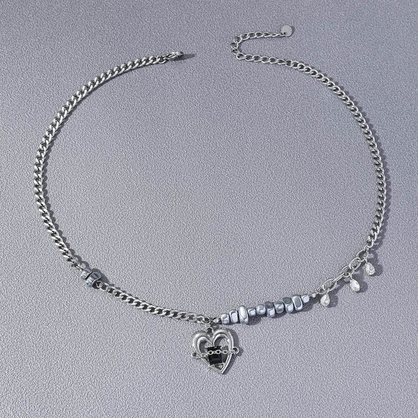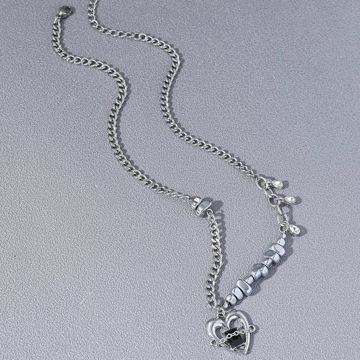 Fashionable Heart-Shaped Necklace with Spliced Stones and Chains for Men and Women