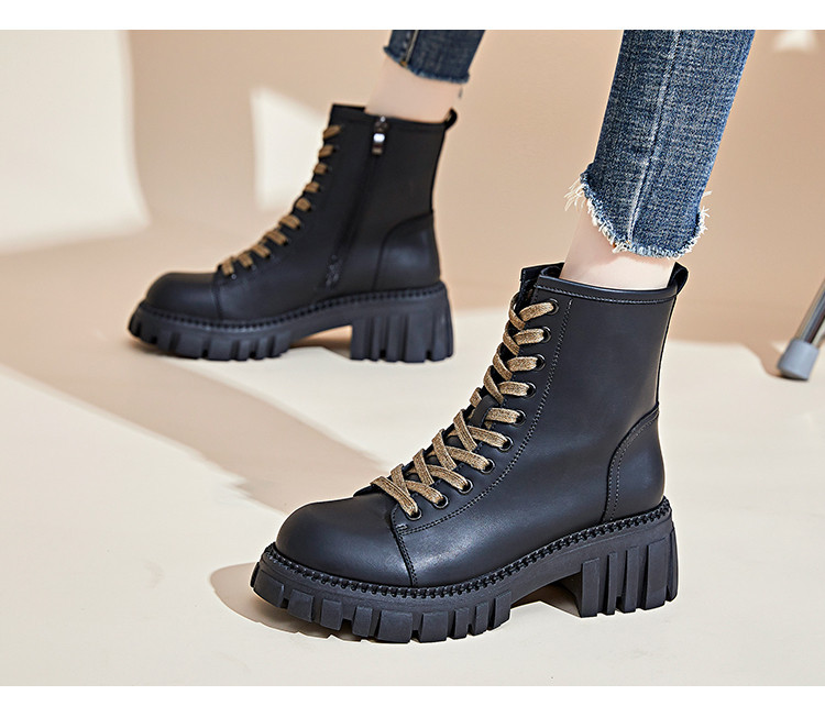 {"Style":"Casual","Pattern":"Solid Color","Function":"Height Increase","Age Range":"Adults","Thickness":"Regular Thickness","Toe Shape":"Round Toe","Heel Shape":"Chunky Heel","Heel Height":"Mid Heel (3-5CM)","Tube Height":"Low Tube","Closure Type":"Front Lacing","Sole Material":"Natural Rubber Sole","Wearing Style":"Front Tie","Inner Material":"Milk Silk + PU","Upper Material":"Two-layer Cowhide","Fashion Element":"Waterproof Platform","Insole Material":"Top Layer Pig Leather","Inspection Unit":"SGS","Product Category":"Martin Boots","Applicable Gender":"Female","Popular Boot Style":"Martin Boots","Sole Craftsmanship":"Adhesive Shoes","Seasonal Suitability":"Autumn","Quality Inspection Report":"No","Lining Material of Boot Cylinder":"PU"}