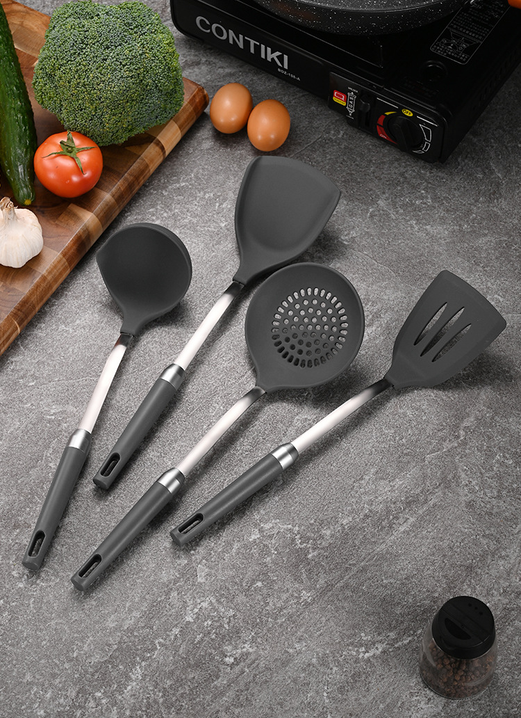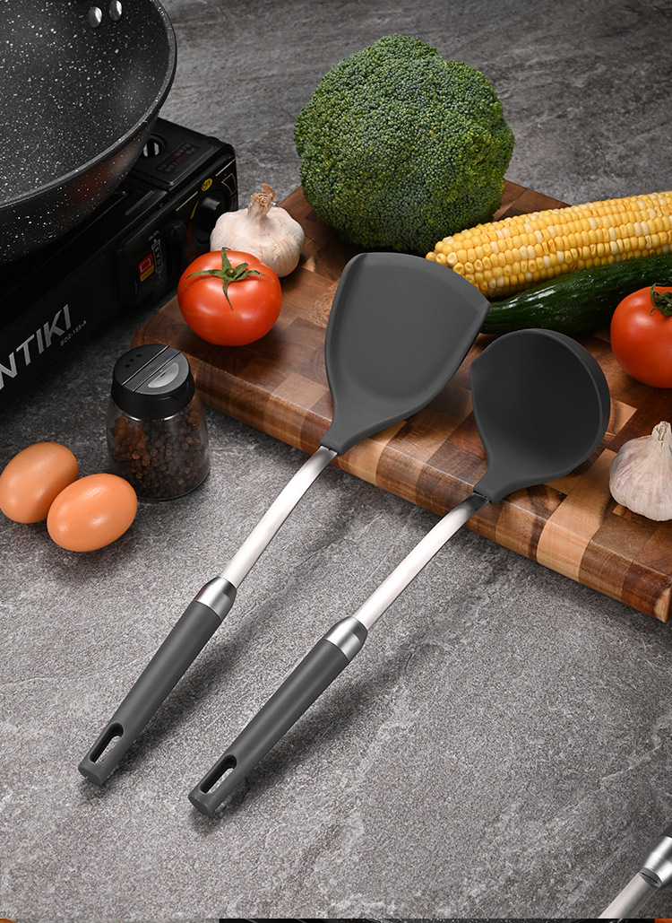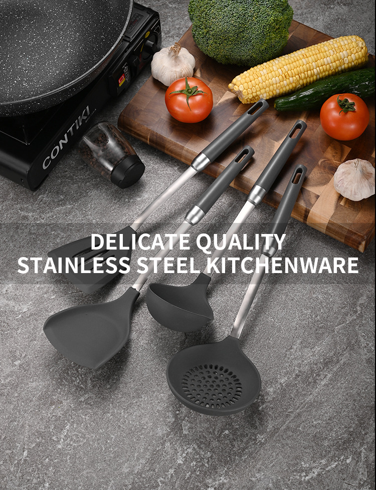 304 Stainless Steel Non-Stick Cookware Set with Silicon Handle for High Temperature Resistance