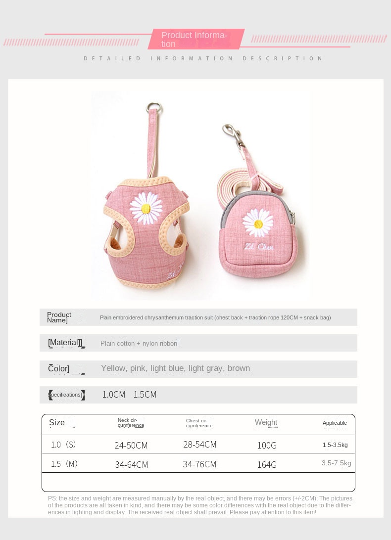 Stripe Embroidery Dog Harness with Adjustable Chest Size for Teddy, Bomei and Other Pets