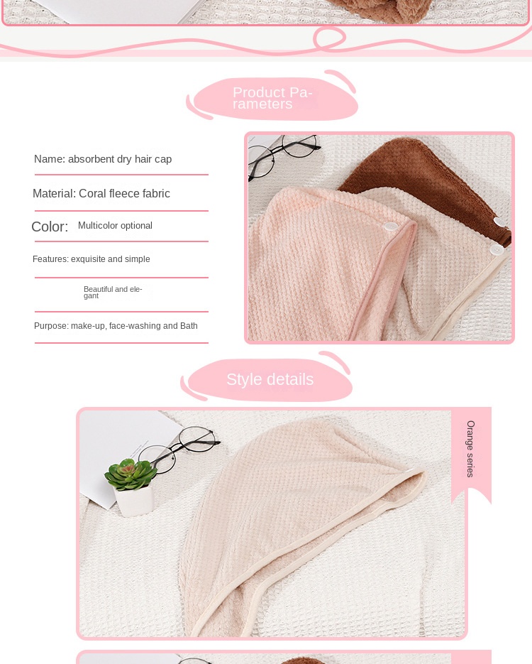 Women's Super Absorbent Coral Fleece Bath Hat with Thickened Design and Logo Printing