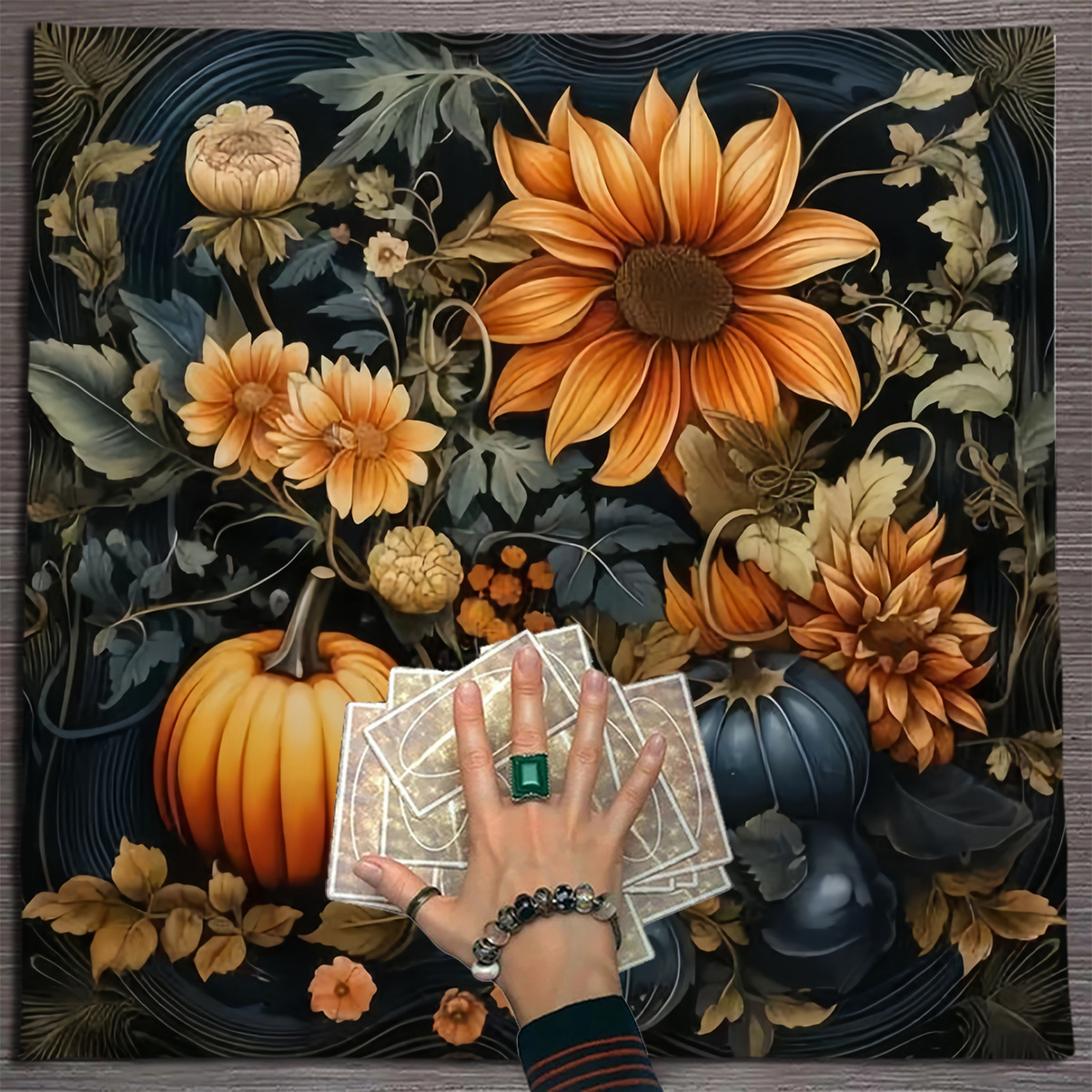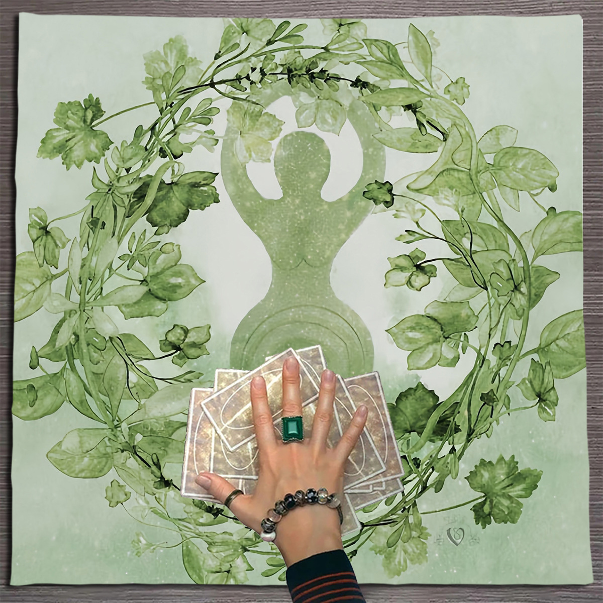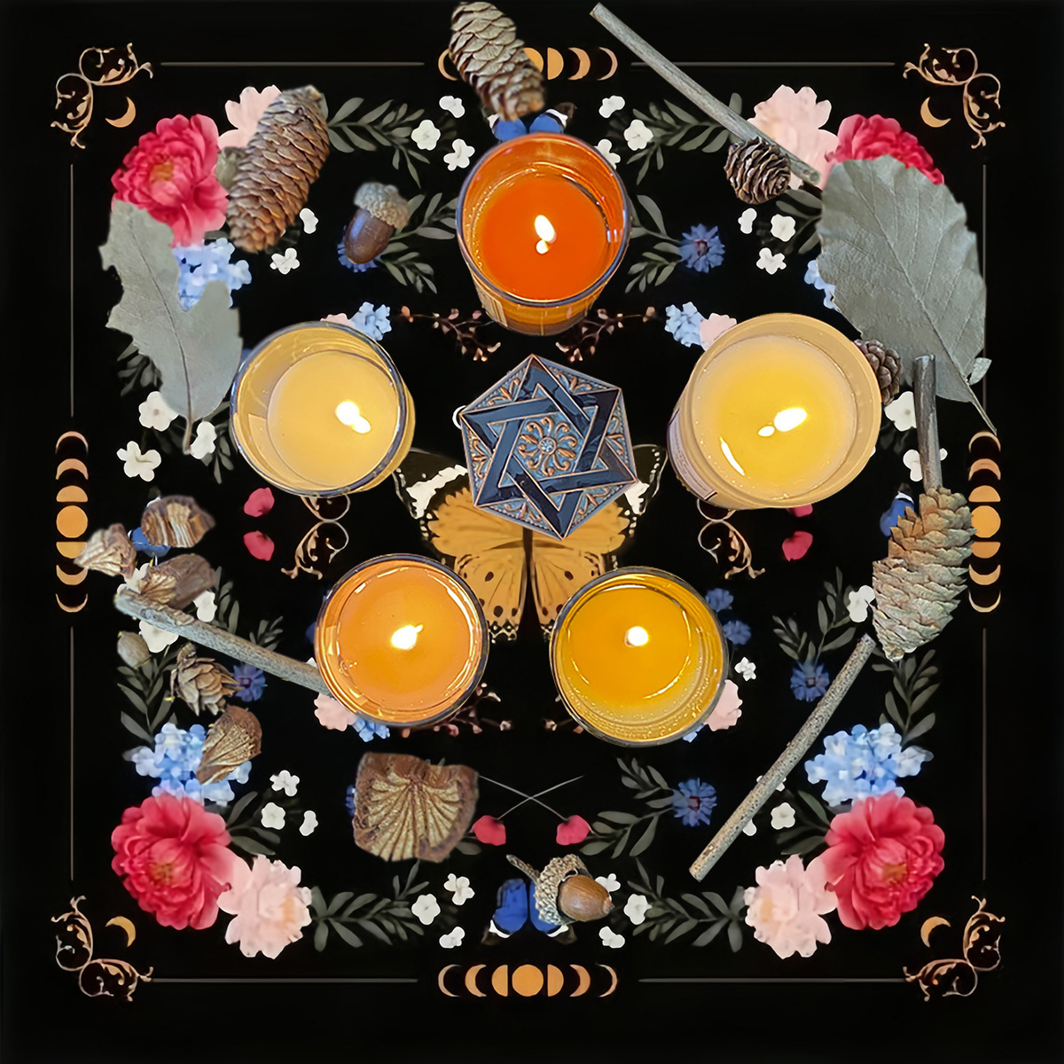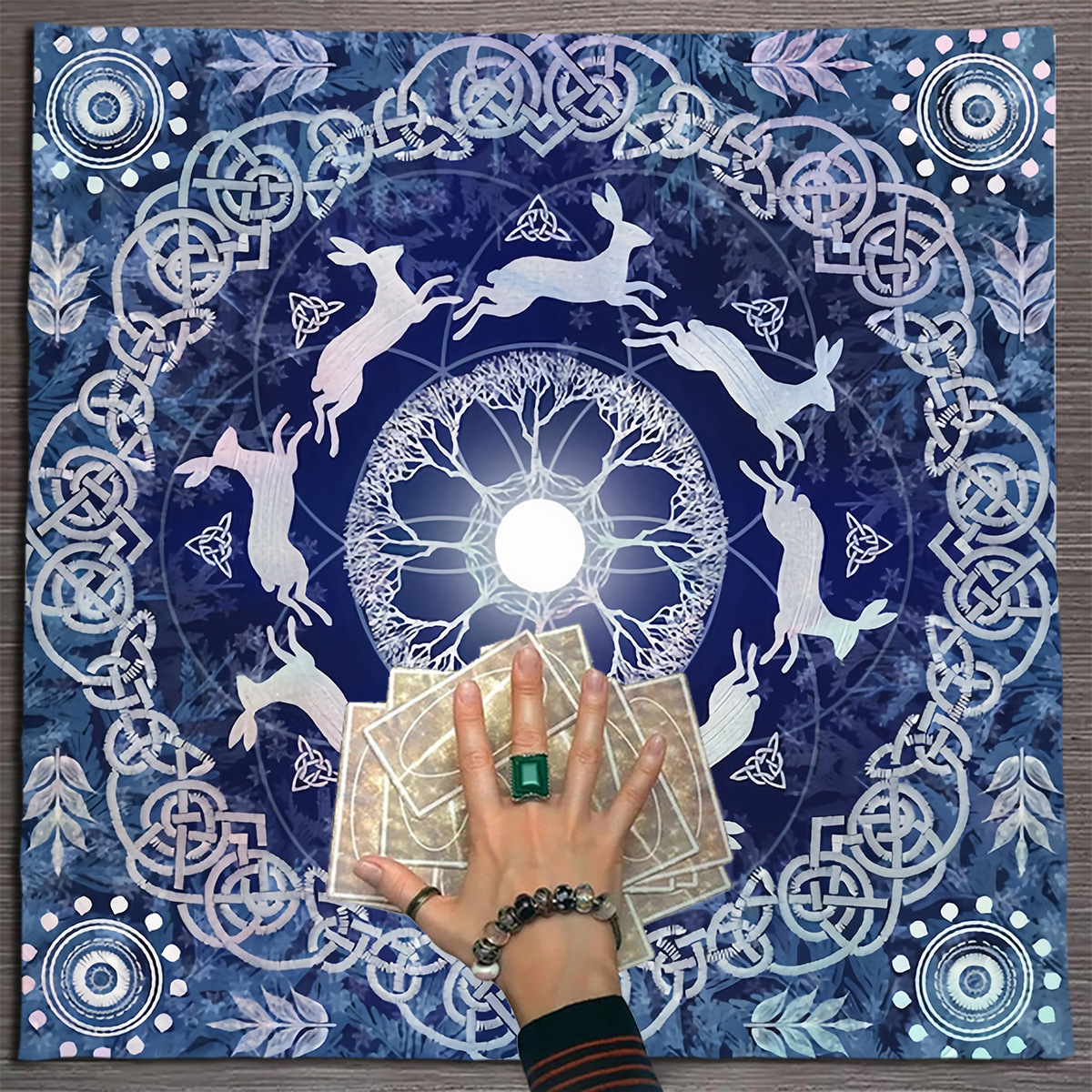 Tarot Tablecloth with Moon Phase Design, Butterfly, and Flower Print