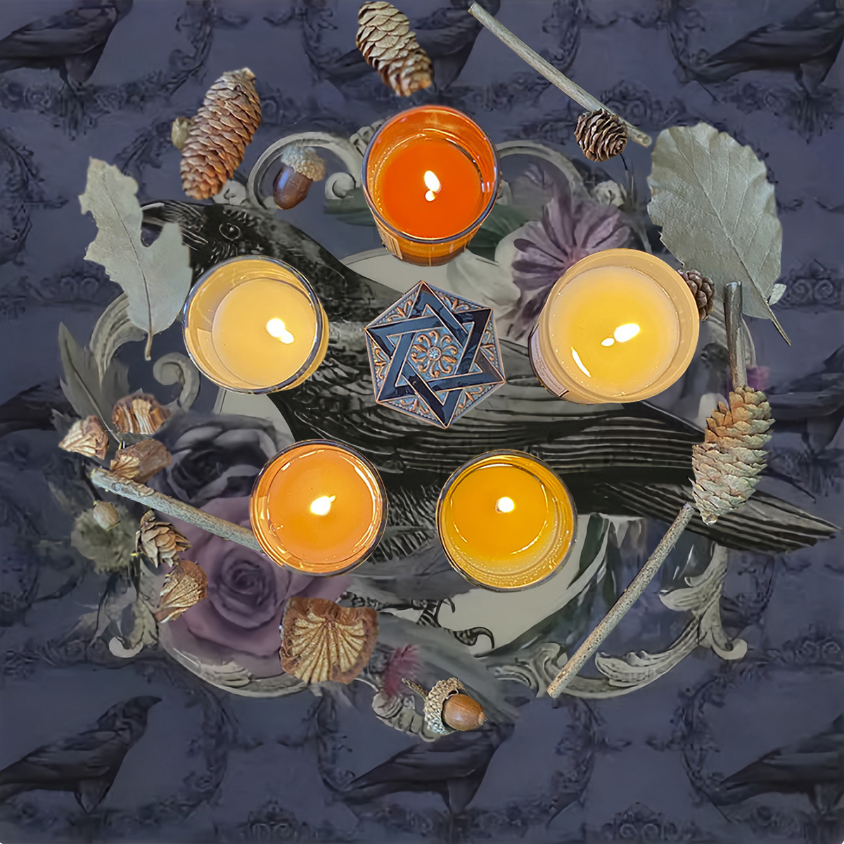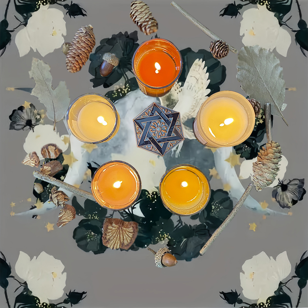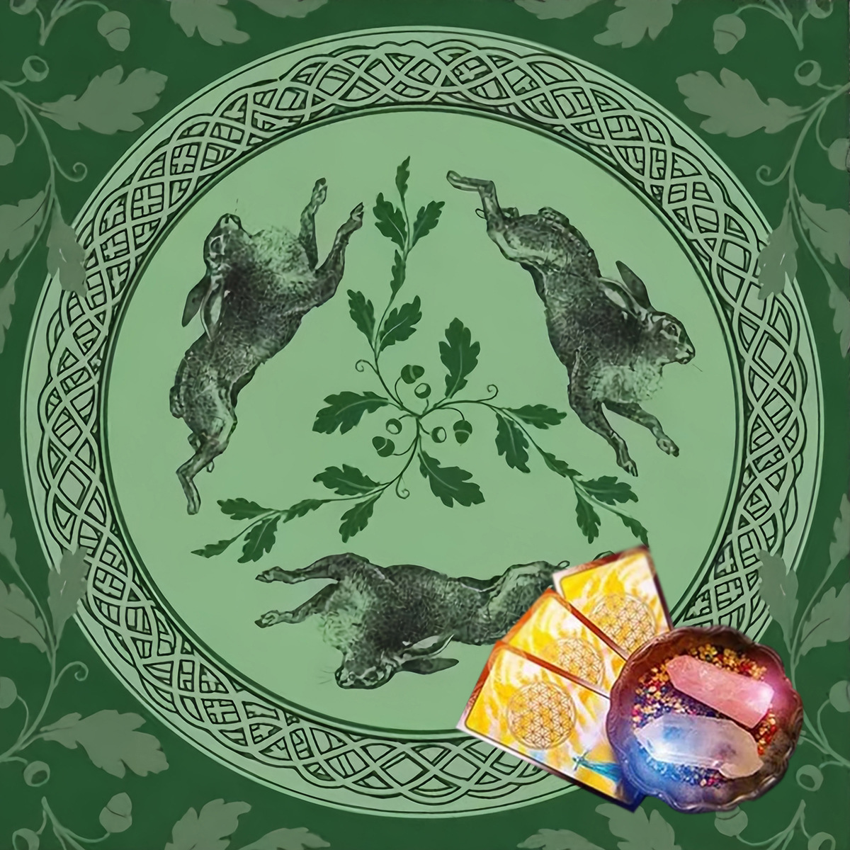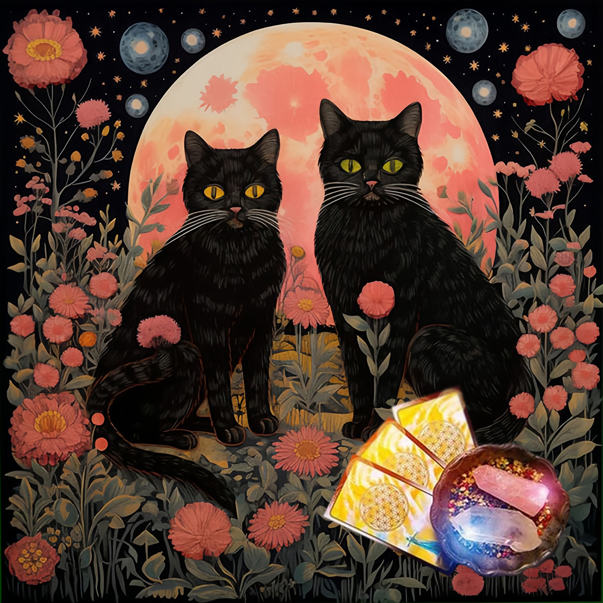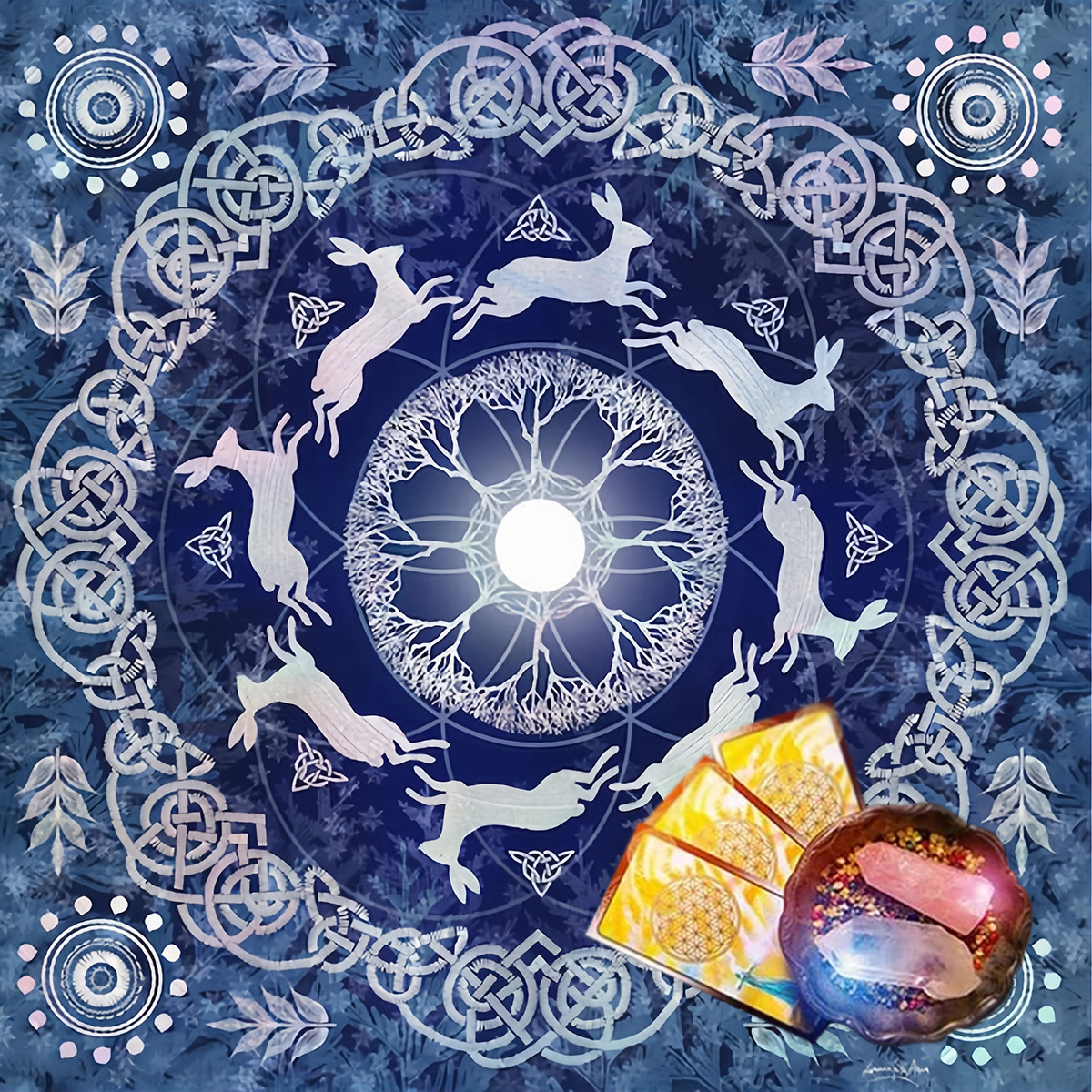 Tarot Tablecloth with Moon Phase Design, Butterfly, and Flower Print