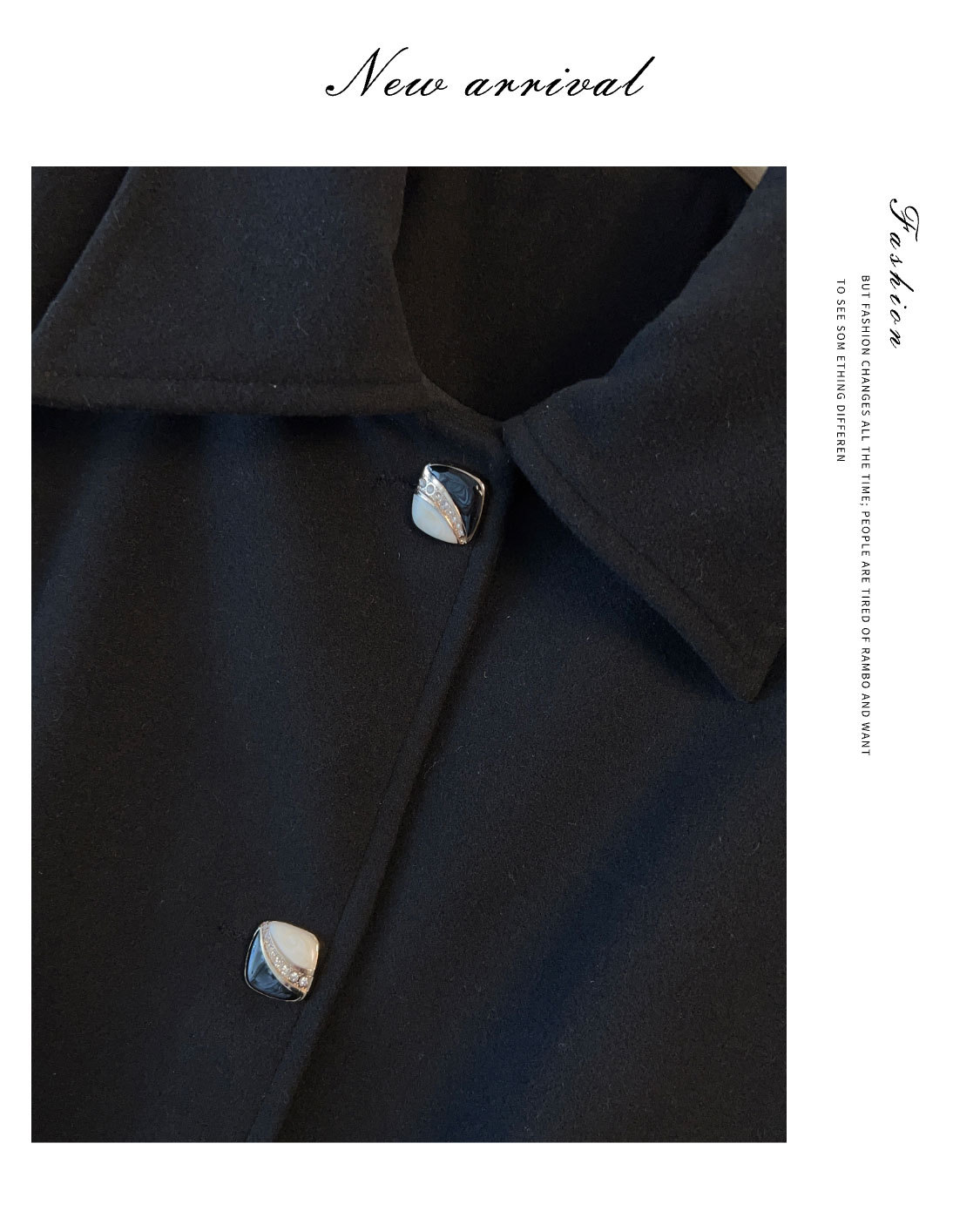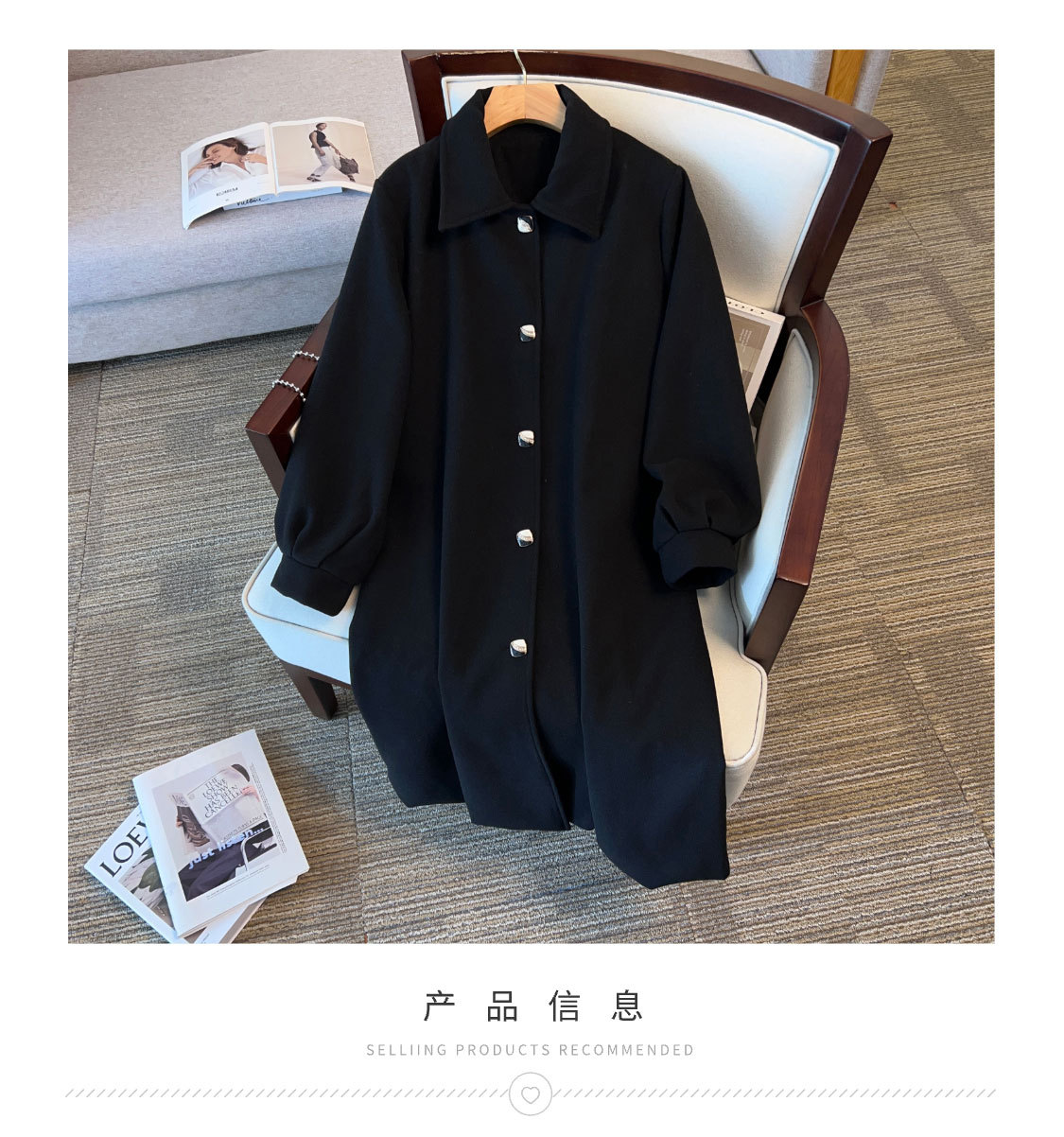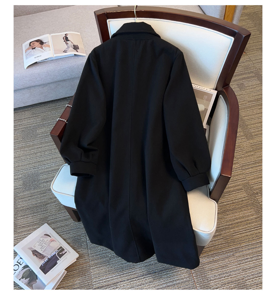 Women's Black Long Coat with 80%-90% Polyester Blend
