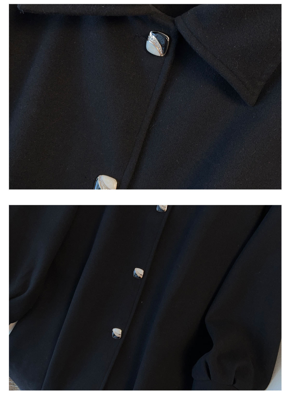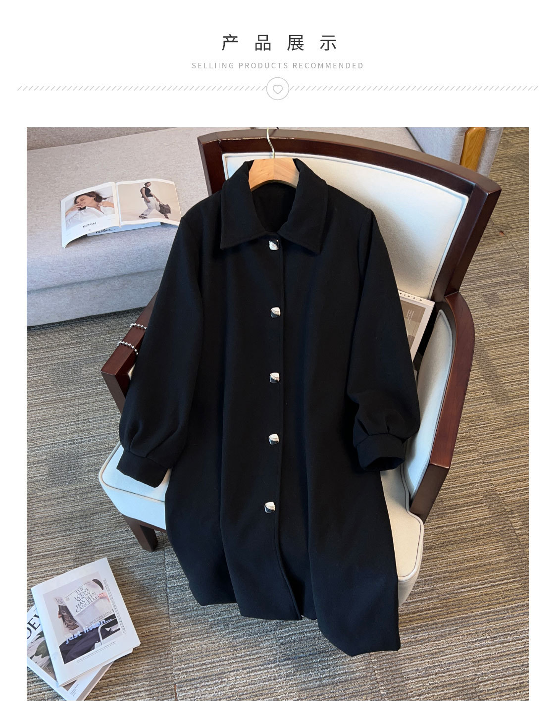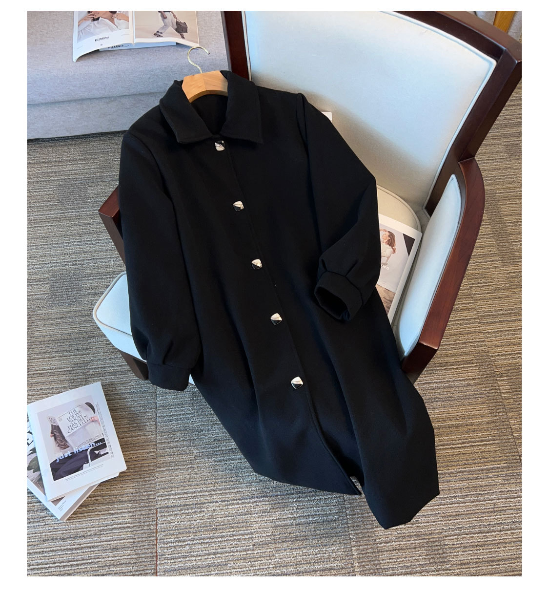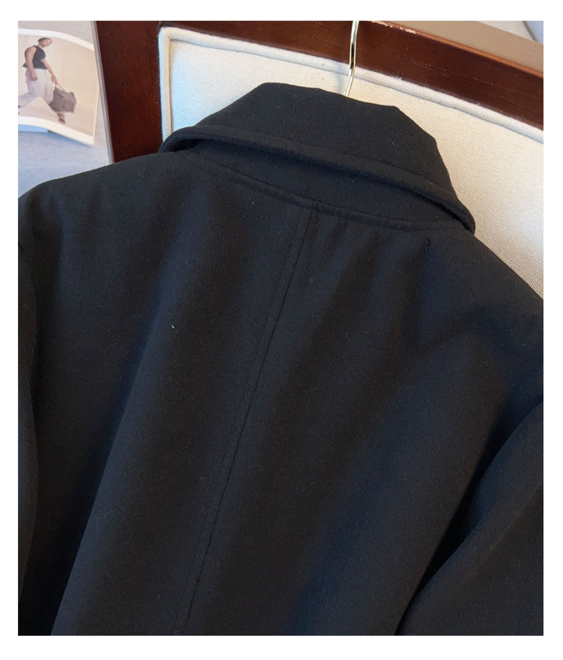 Women's Black Long Coat with 80%-90% Polyester Blend