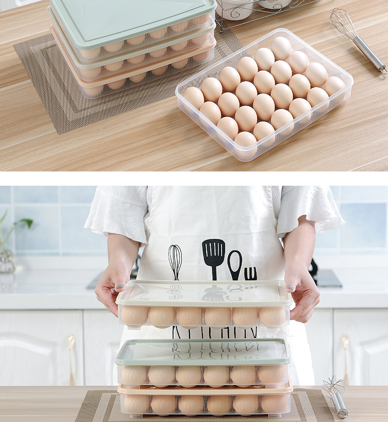 Kitchen Refrigerator Egg Storage Box with Plastic Material, Lockable and Fresh-Keeping Feature