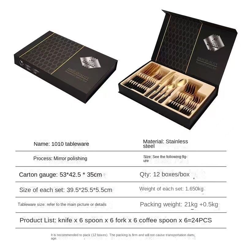 1010 24-Piece Stainless Steel Flatware Set with 6 Dinner Knives, 6 Dinner Forks, 6 Dinner Spoons, 6 Teaspoons, and 6 Gift Boxes