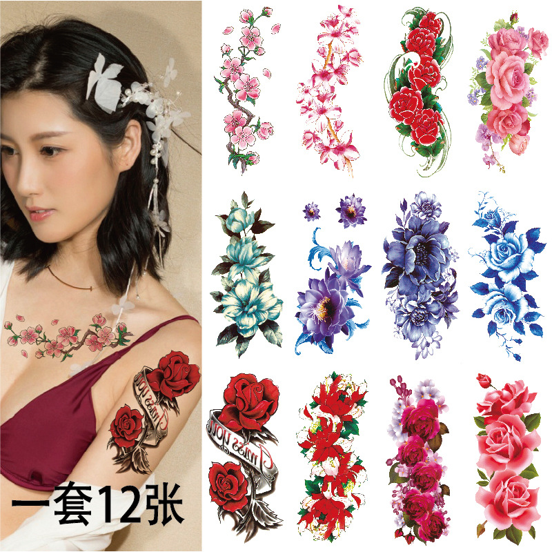 12Pcs 3D Flower Tattoo Stickers Waterproof Butterfly Rose Pattern Body Stickers Customizable for Gift and Business Advertising