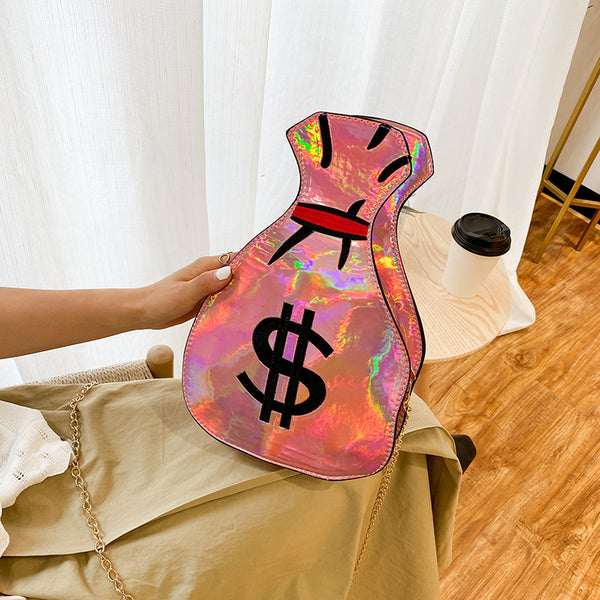 New Fashion Creative Funny Personalized Embroidered Dollar Bag Shoulder Bag Reflective Laser Chain Bag