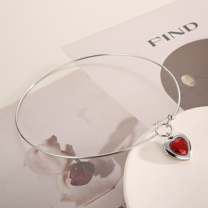 - ["Made of titanium steel, non-fading and durable","Stylish glass stone heart pendant","Suitable for both men and women","Lightweight and comfortable to wear","Fashionable casual style"]