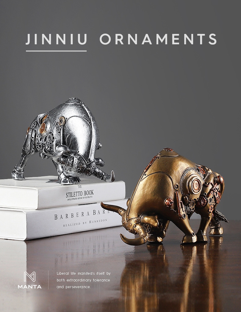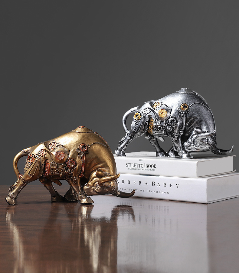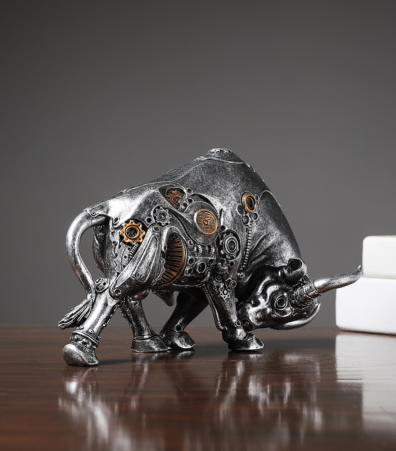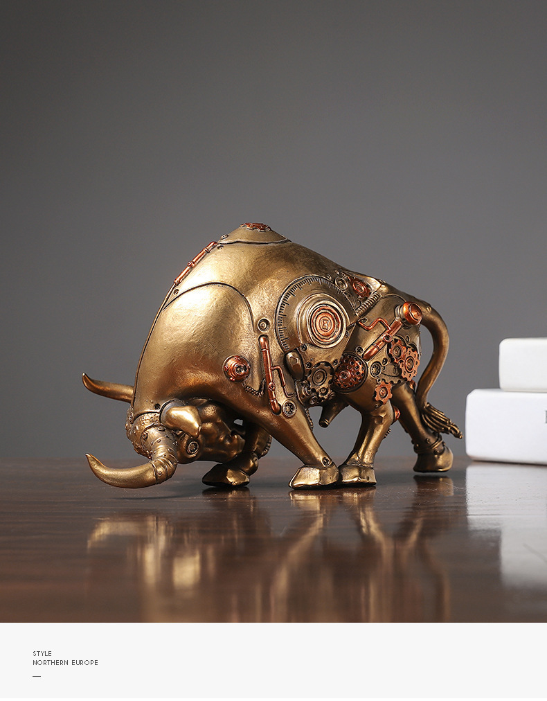 European Mechanical Bull Simulation Animal Cyberpunk Resin Craft Home Cabinet Decor