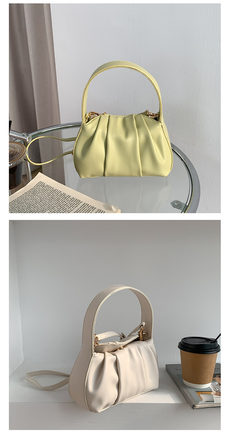 {"Style":"Cloud Bag, Handbag, Crossbody Bag, Shoulder Bag, Pleated Bag","Fashion":"Macaron Color, Candy Color,","Layered":"No","Bag Size":"Medium","Bag Type":"Inner Bag","Hardness":"Moderately Soft","Material":"PU","Bag Shape":"Horizontal Rectangular","Fabric Quality":"Polyester","Opening Method":"Screw-on Lid","Bag Trend Style":"Small Square Bag","Fashion Element":"Pleats, Topstitching","Inner Structure":"Phone Bag","Applicable Scene":"Daily Matching","Number of Shoulder Straps":"Double"}