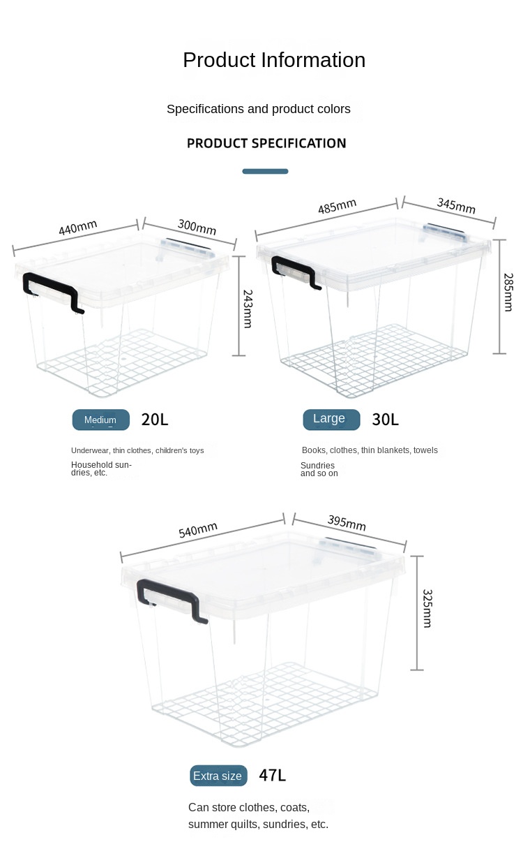 Xitianlong Transparent Storage Box 20-47L for Home Plastic Container with Lid Organizer