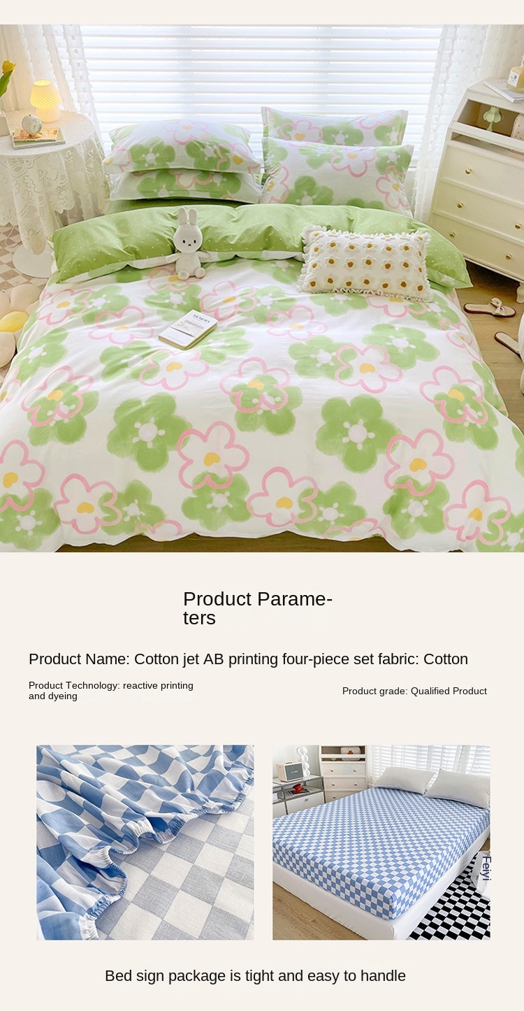 100% Cotton Printed Four-Piece Bedding Set- Spring/Summer Style