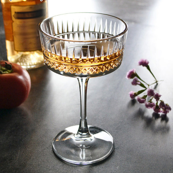 European Style High Foot Cup Classic Wide Mouth Engraved Champagne Flute Home Use Glass Wine Cup Creative Personality Bar Cocktail Cup
