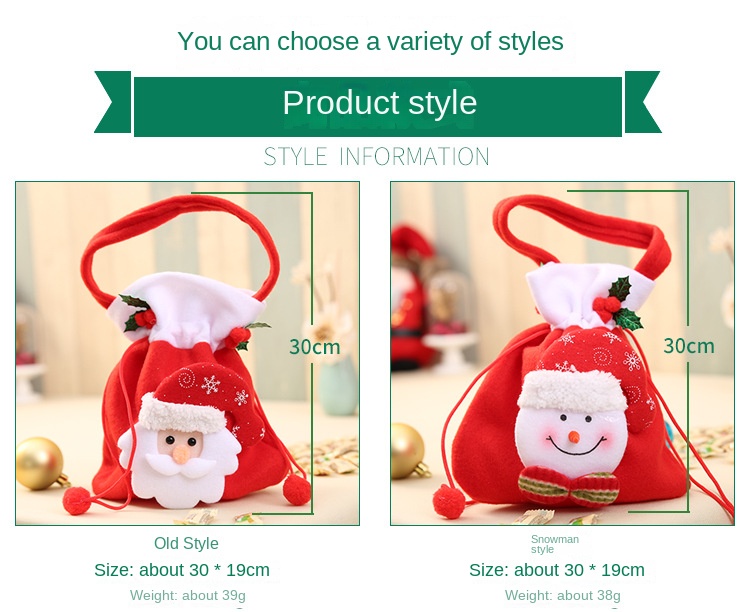 Christmas Decoration Gift Bag for Santa Claus, Candy, and Gifts, 30*19cm
