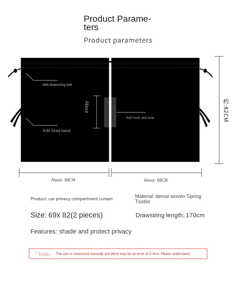 Half Transparent Car Sunshade Curtain with Snap Fastener for Universal Cars