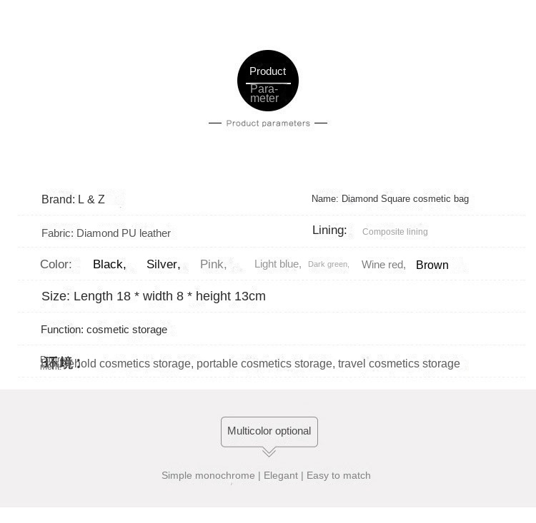 Black PU Leather Cosmetic Bag for Travel, Makeup, Toiletries Storage