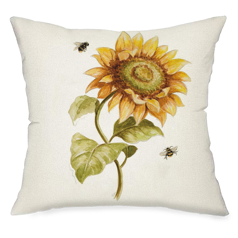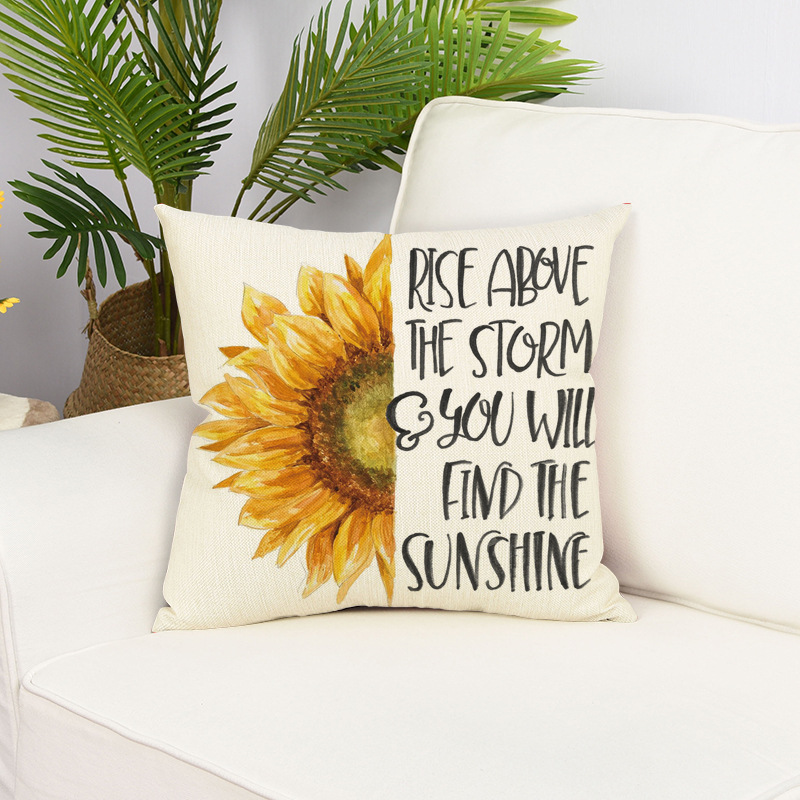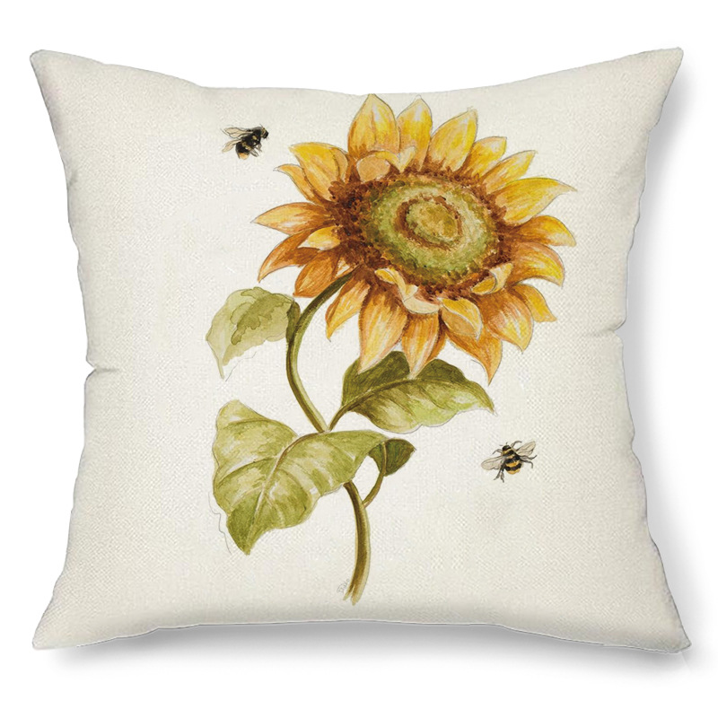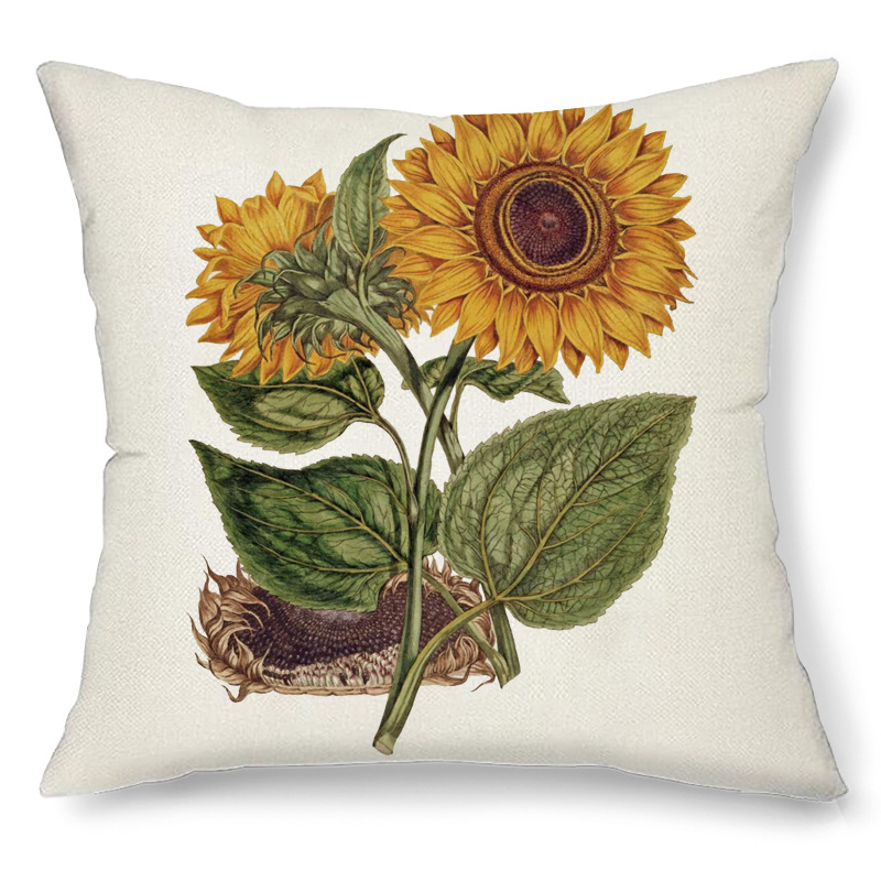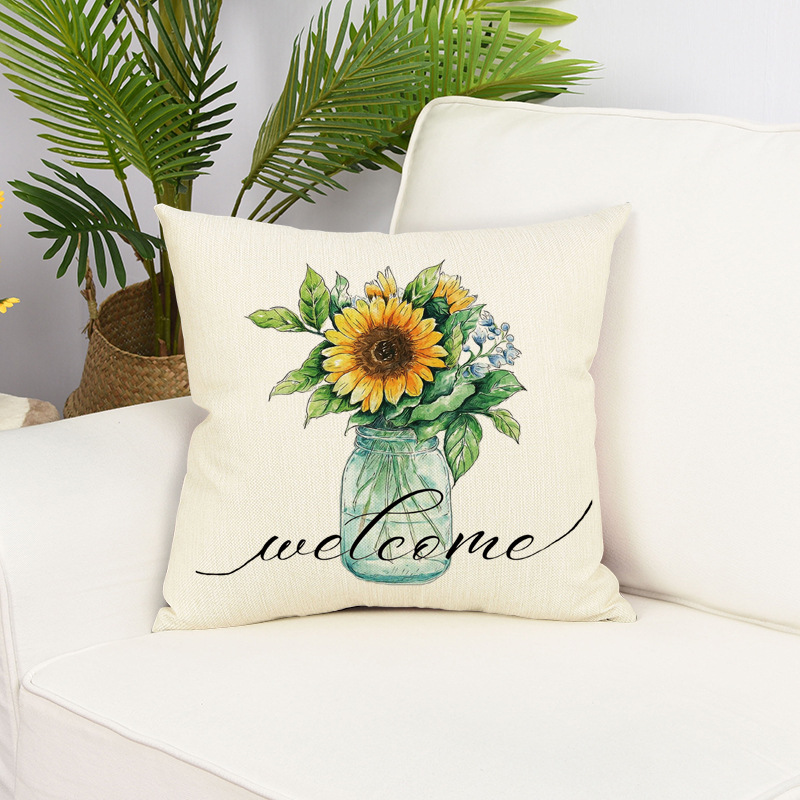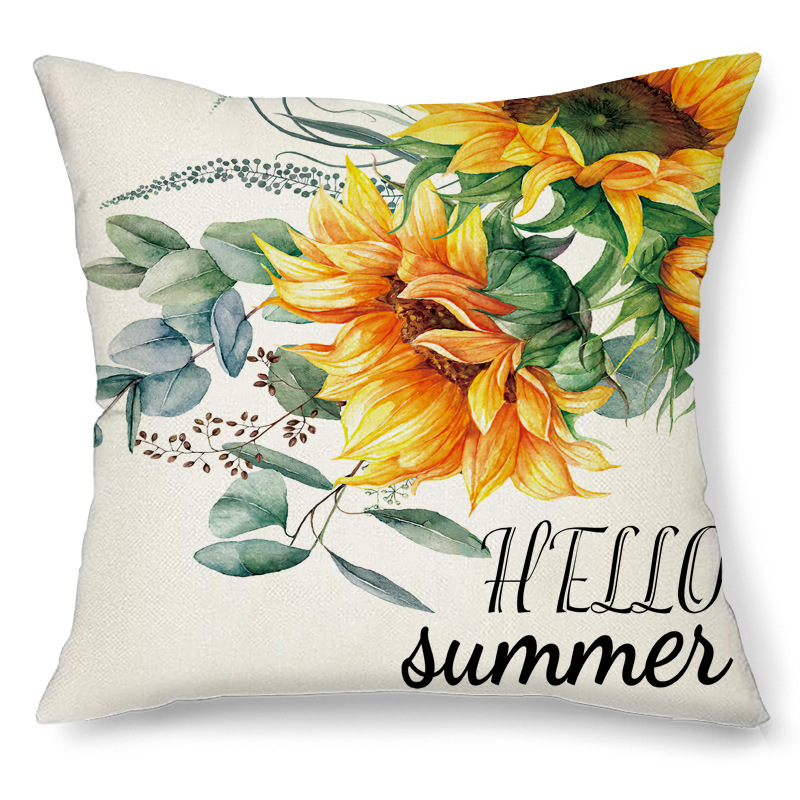 Summer Sunflower Linen Pillowcase with PP Filling for Home Decoration