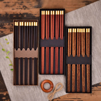 Chinese Style Alloy Folding Chopsticks with Red Sandalwood Box Gift Set for Family Use