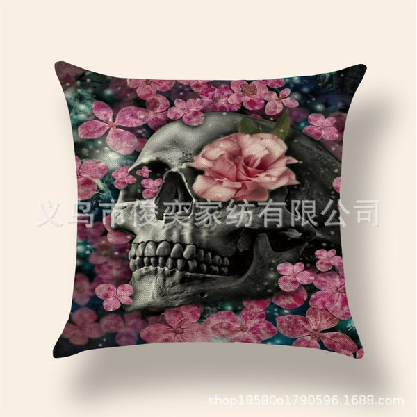 Halloween Skull Head Pillow Cover - Customizable Home Decor Cushion Cover with 71%-80% Polyester Filling, 45*45cm