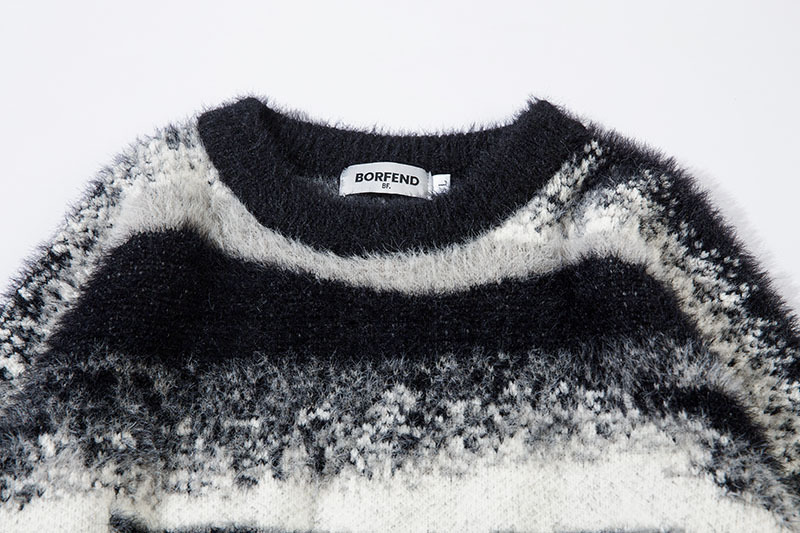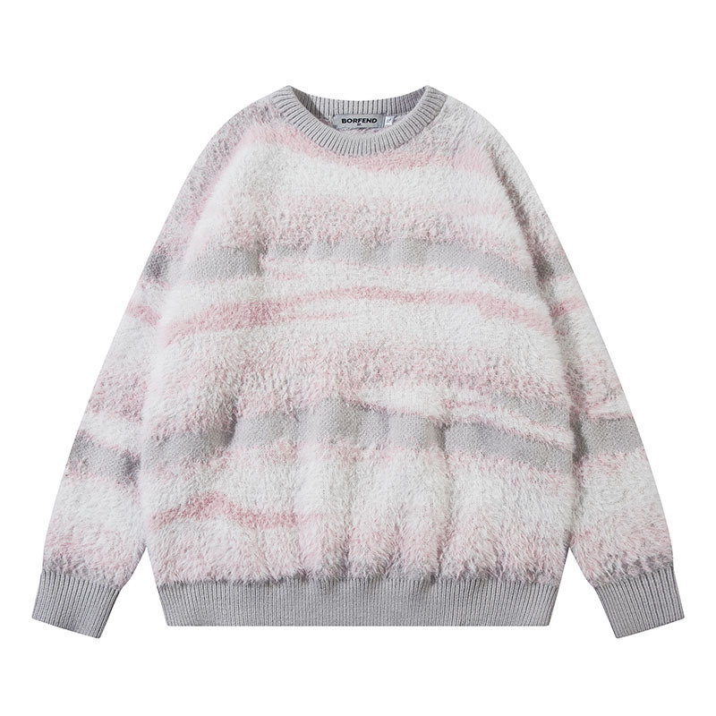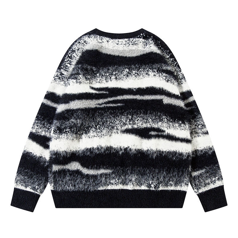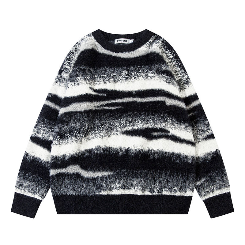 TKPA National Retro Lazy Style Couple Knit Top Gradient Striped Casual Round Neck Sweater for Men