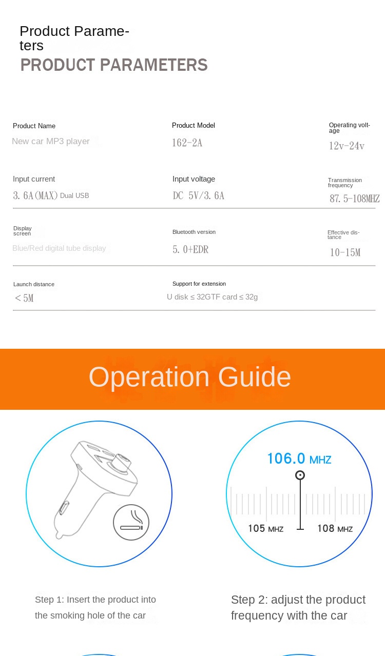 Power Supply Mode: Cigarette Lighter Style Car MP3
