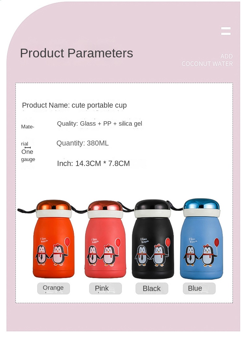 Cute Cartoon Double Layer Glass Water Bottle for Home Use with Logo Printing