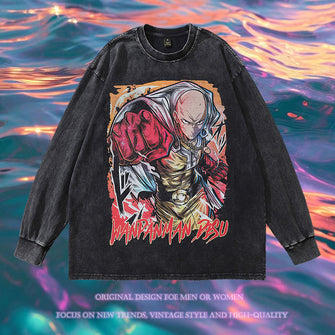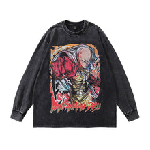 TKPA American Retro Street Fashion Anime Print Round Neck Sweater Hip-hop Washed Long Sleeve T-shirt Unisex