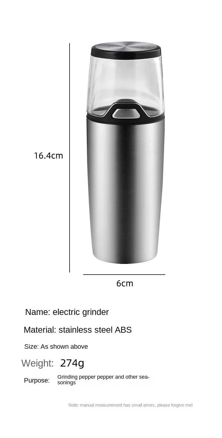 Electric Stainless Steel Pepper Grinder with Ceramic Core