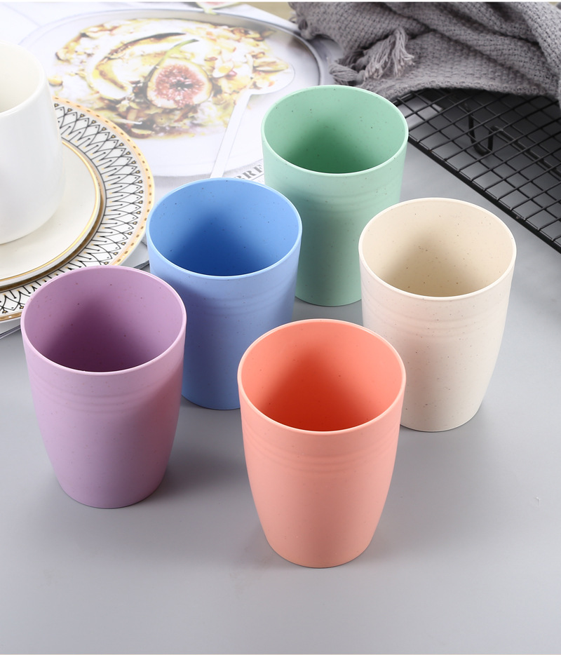 450ml Wheat Straw Kids Toothbrush Cup with 5PCS-Packaging, High Quality, Customizable, Modern and Simple Design