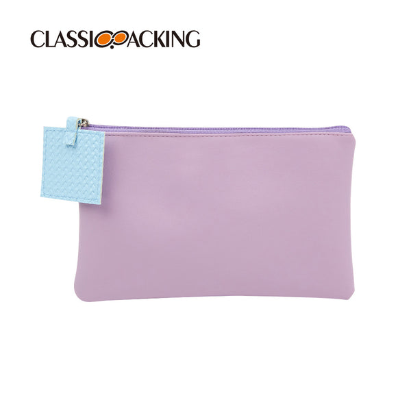 - ["Lightweight and Portable","Fashionable Design","Durable PVC Material","Zipper Closure for Security","Variety of Color Options"]