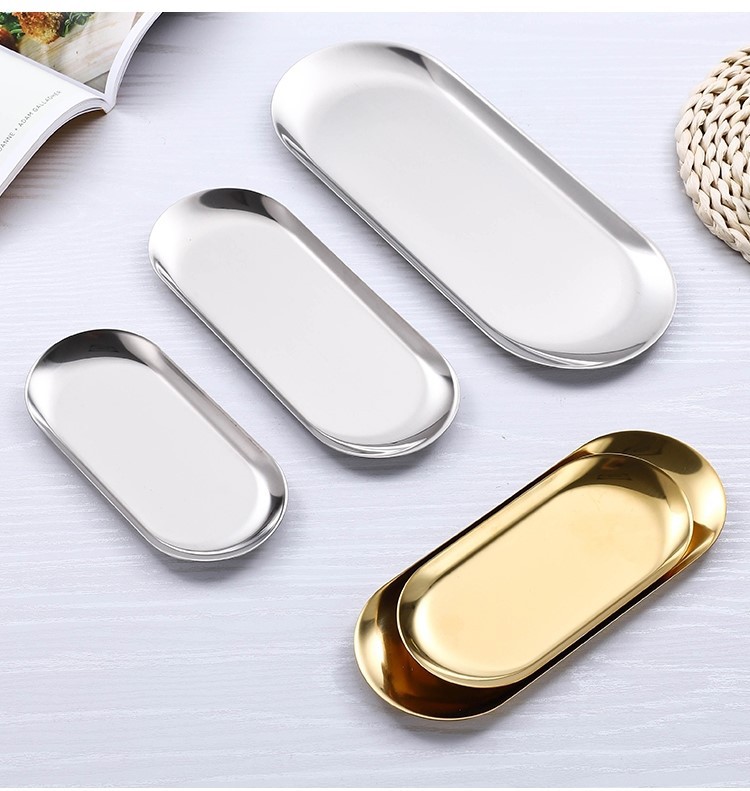 Gold Towel Plate Nordic Ins Outdoor Stainless Steel Oval Tray