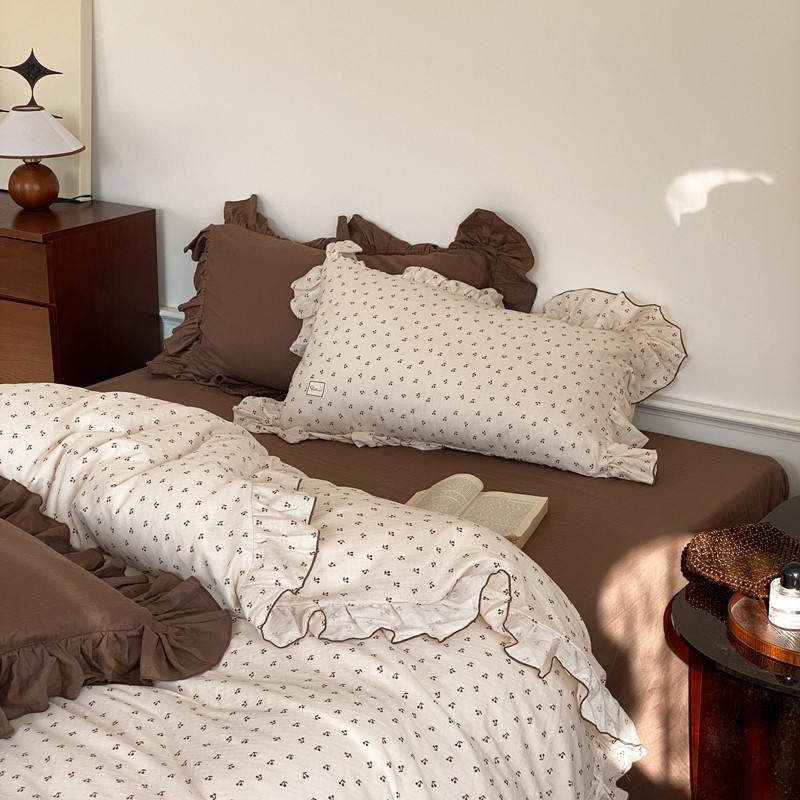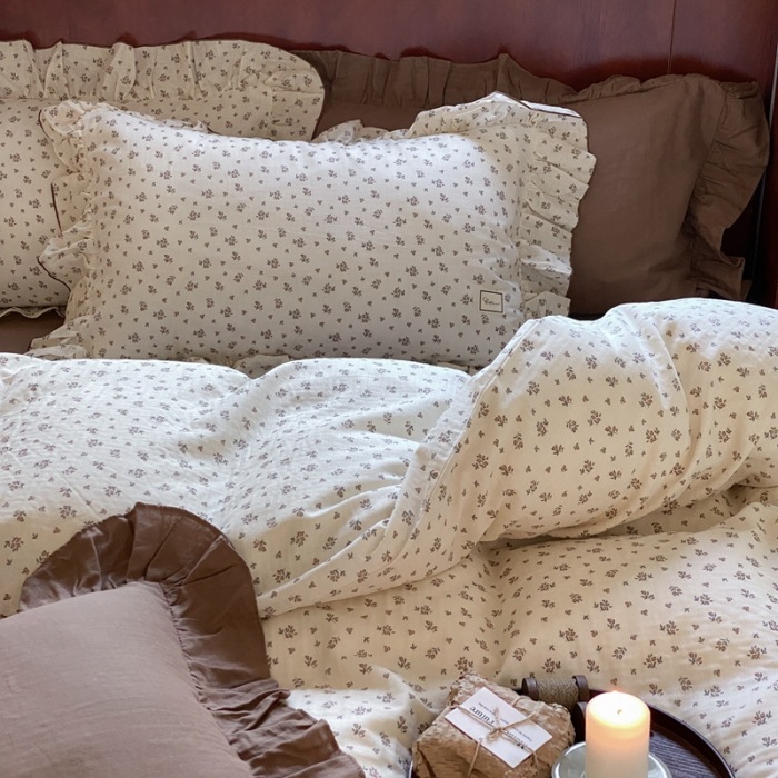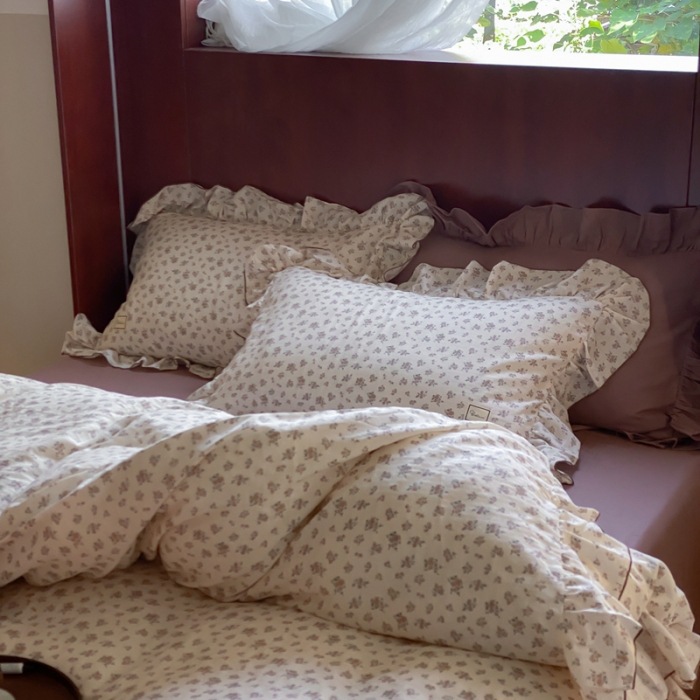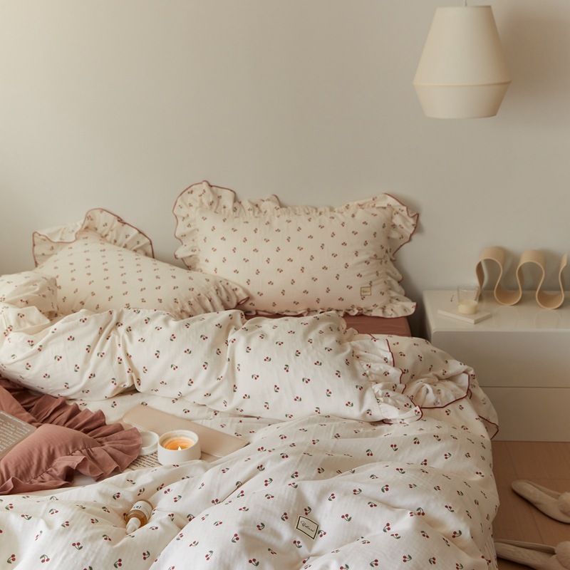 Romantic Floral Cotton Bedding Set with Embroidery, Jacquard and Printing Patterns